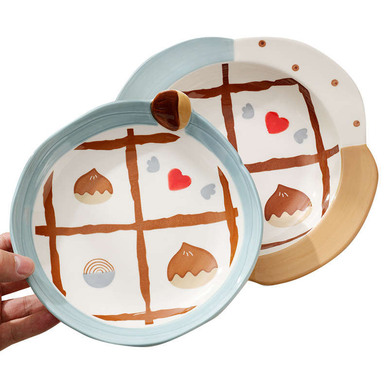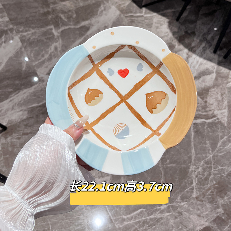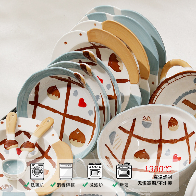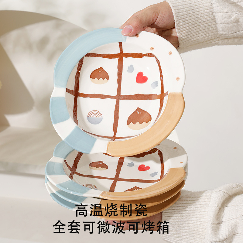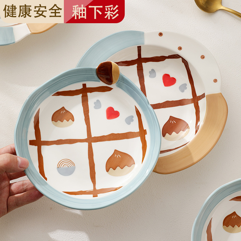 可爱卡通釉下彩陶瓷盘子餐具家用饭碗水果酸奶碗早餐盘甜品盘深盘
