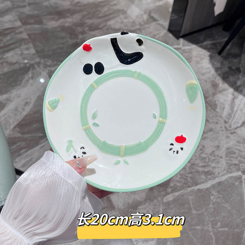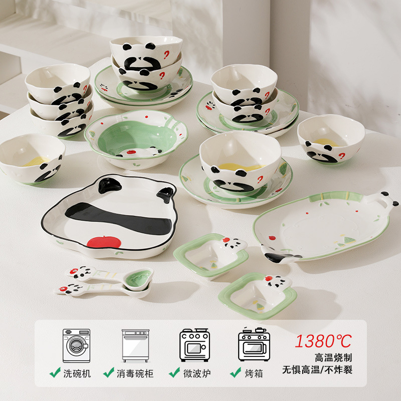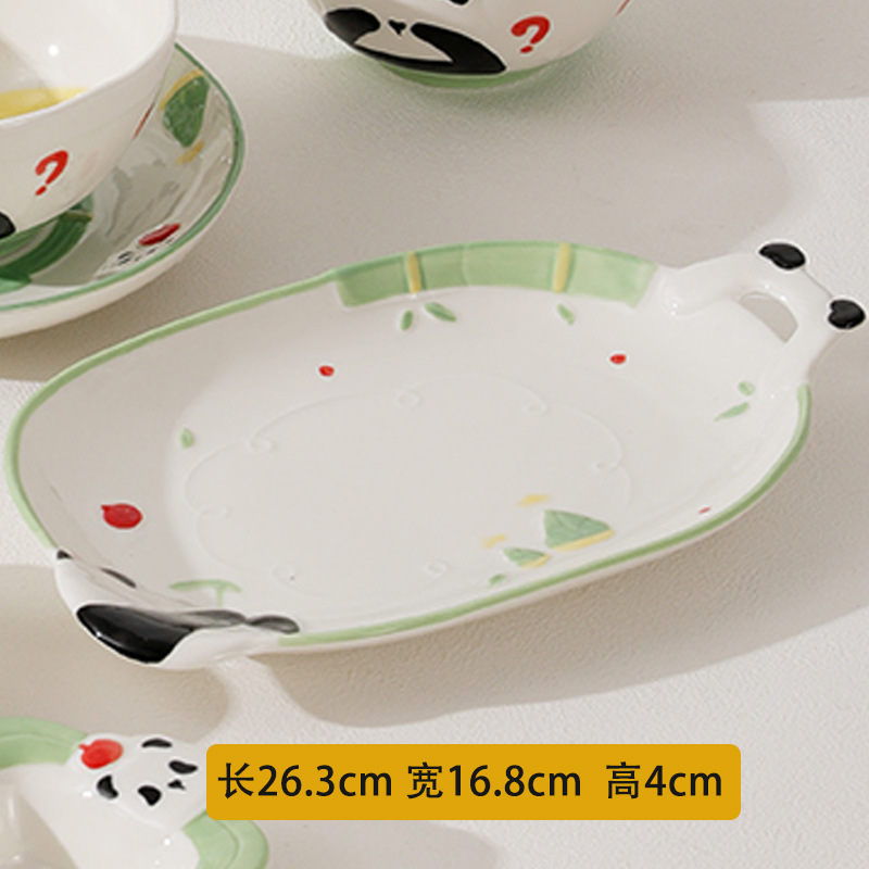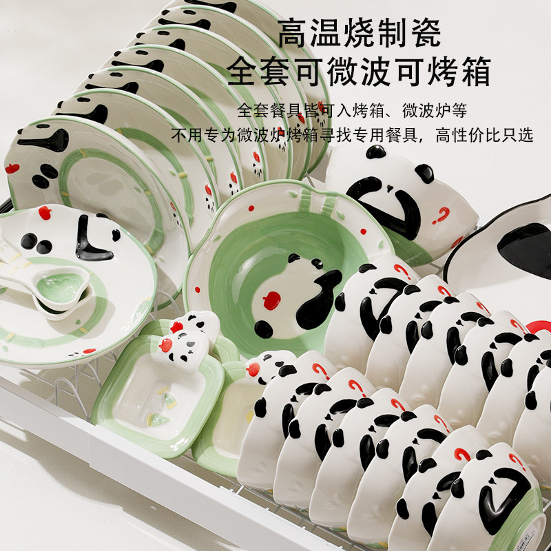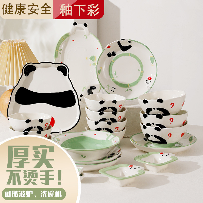 新国风可爱熊猫陶瓷碗碟手绘浮雕釉下彩创意家用饭碗汤碗菜盘鱼盘