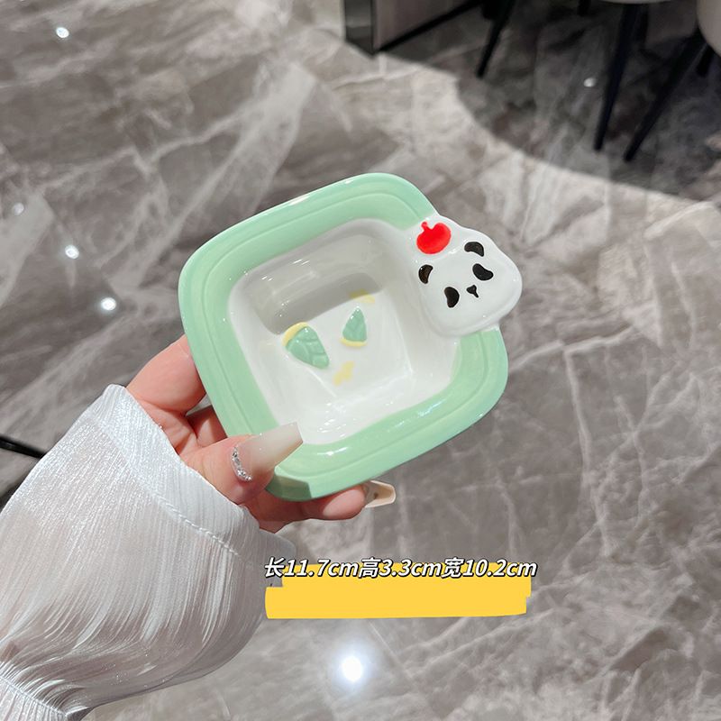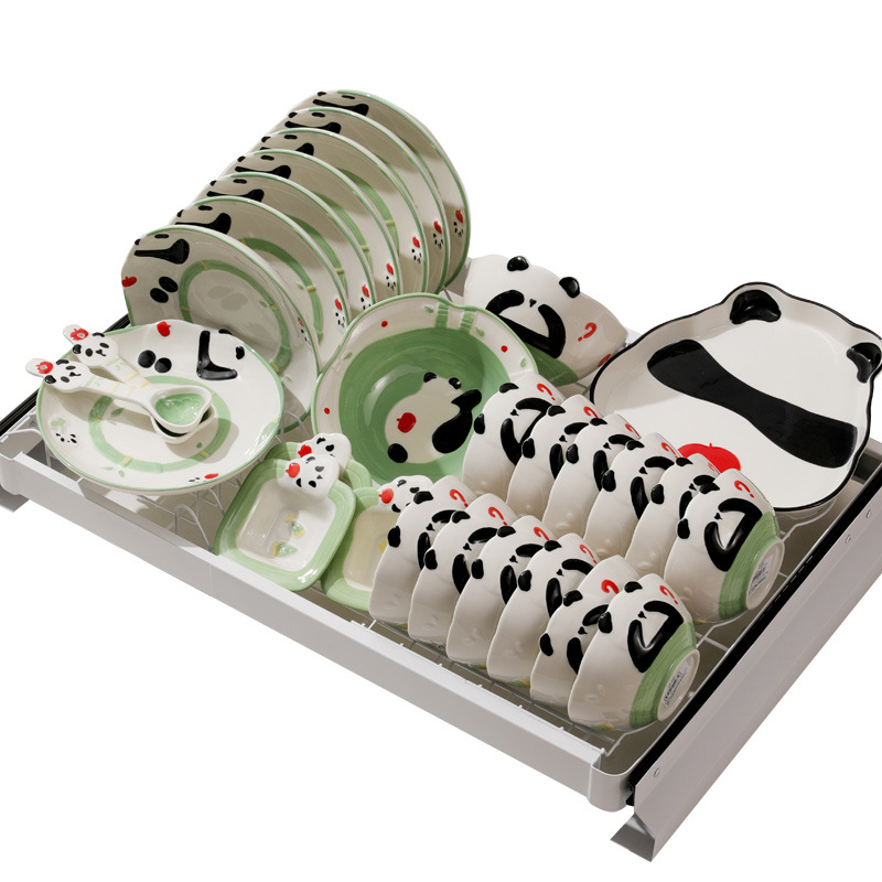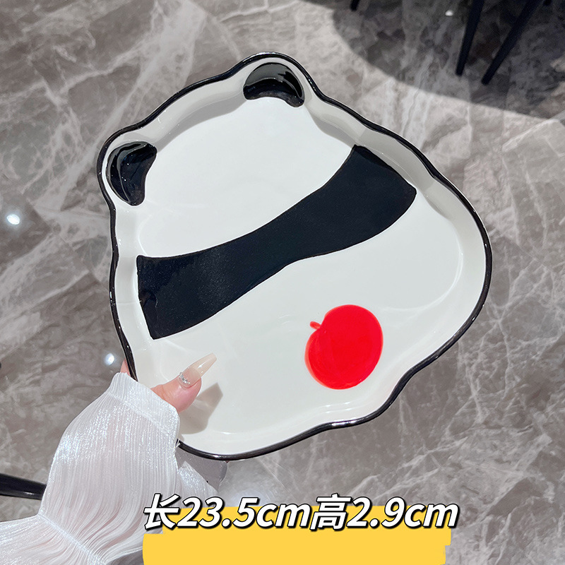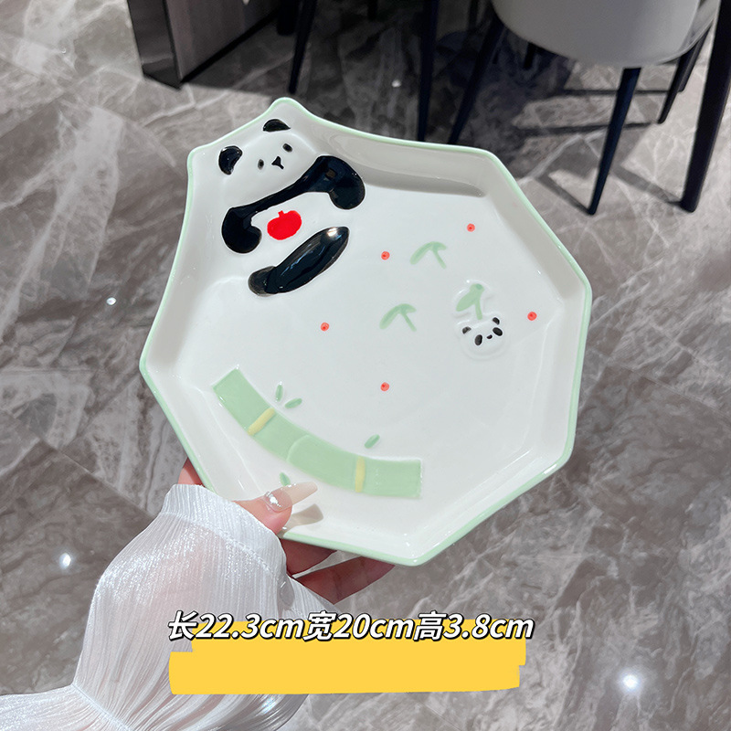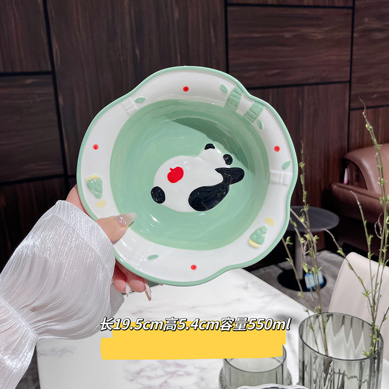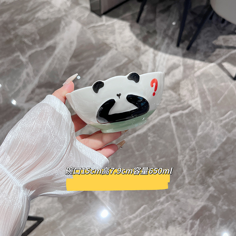 新国风可爱熊猫陶瓷碗碟手绘浮雕釉下彩创意家用饭碗汤碗菜盘鱼盘