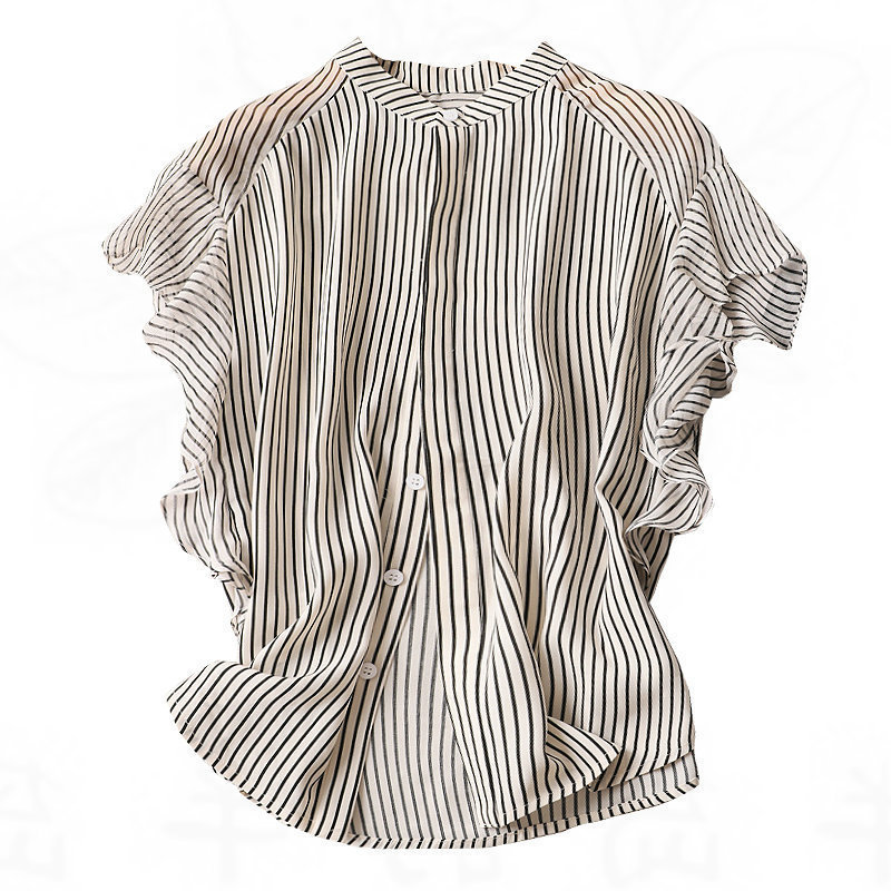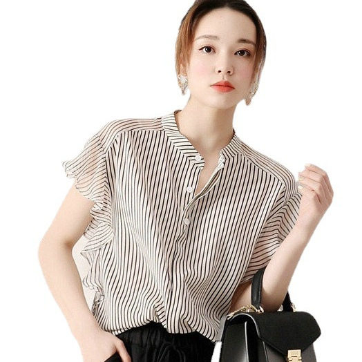 雪纺女上衣夏季新款日系舒适百搭衬衣气质靓丽ol风条纹短袖女