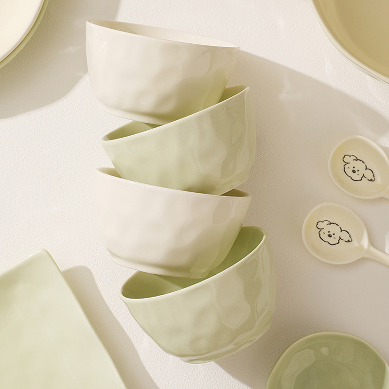 手捏纹4.7英寸碗【奶绿】