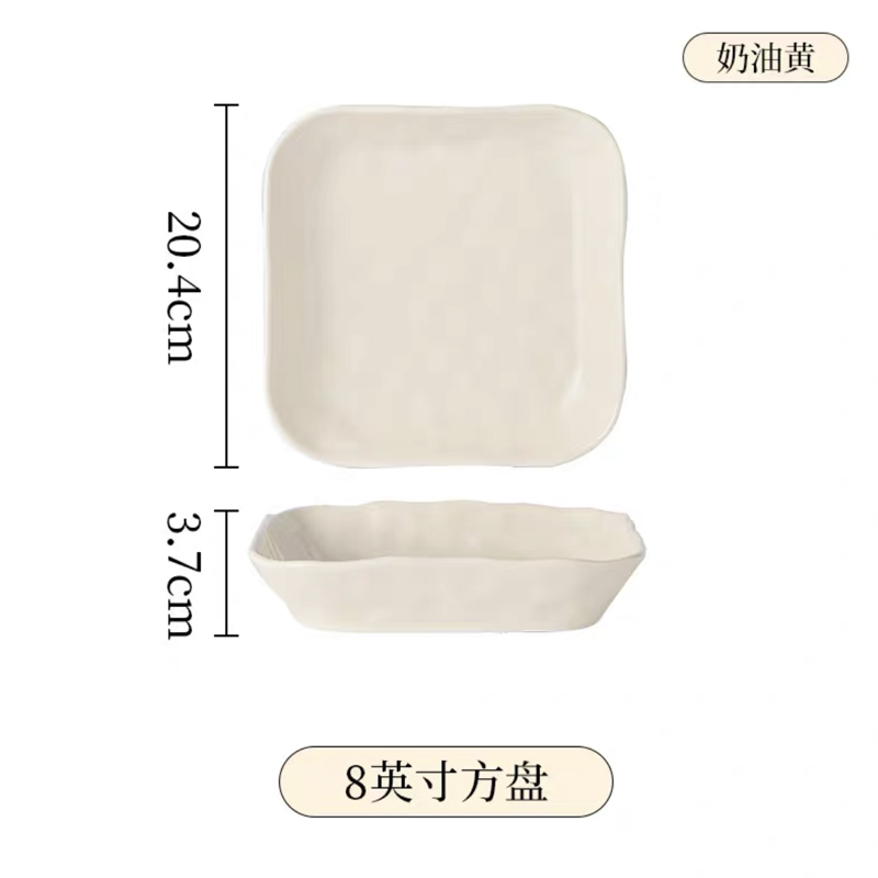 手捏纹8英寸方形盘【奶白】