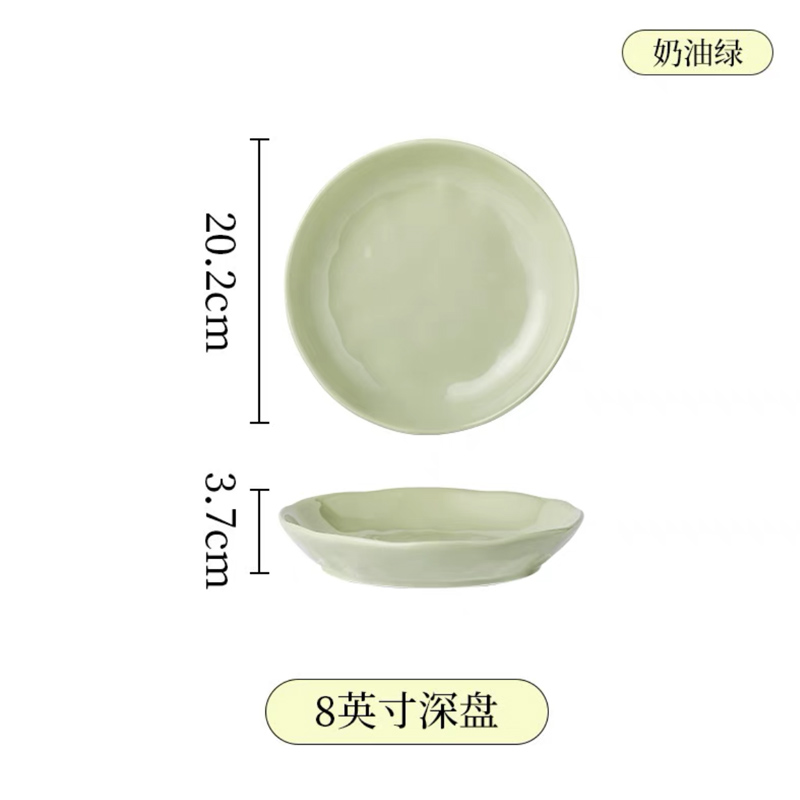 手捏纹8英寸深盘【奶绿】