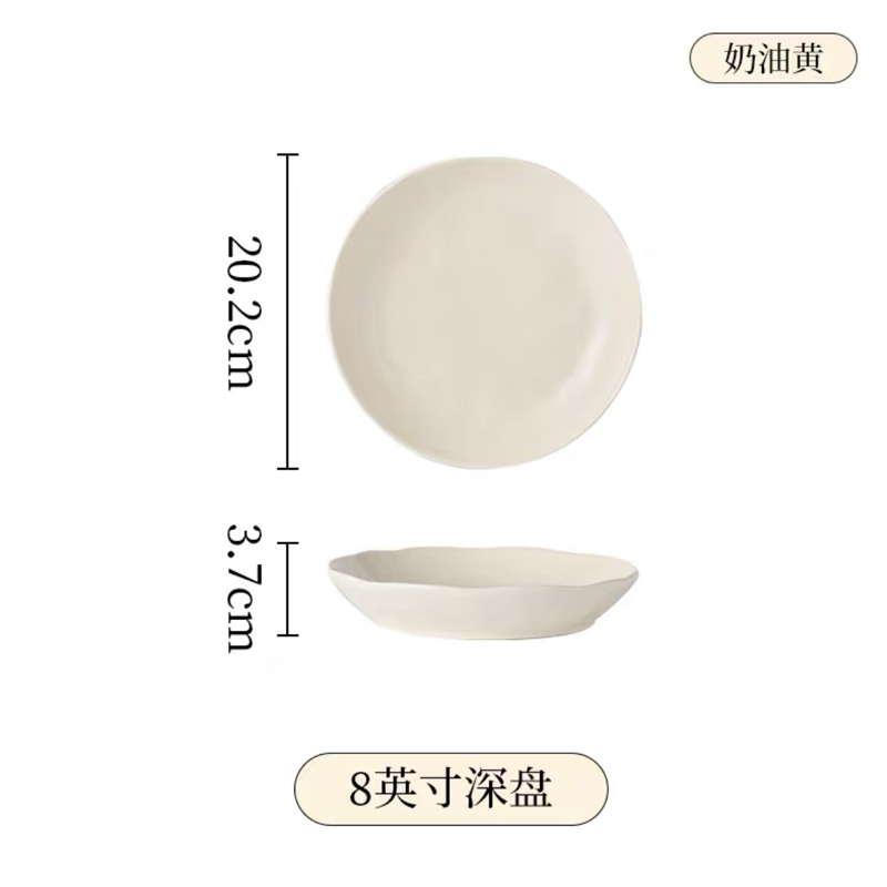 手捏纹8英寸深盘【奶白】