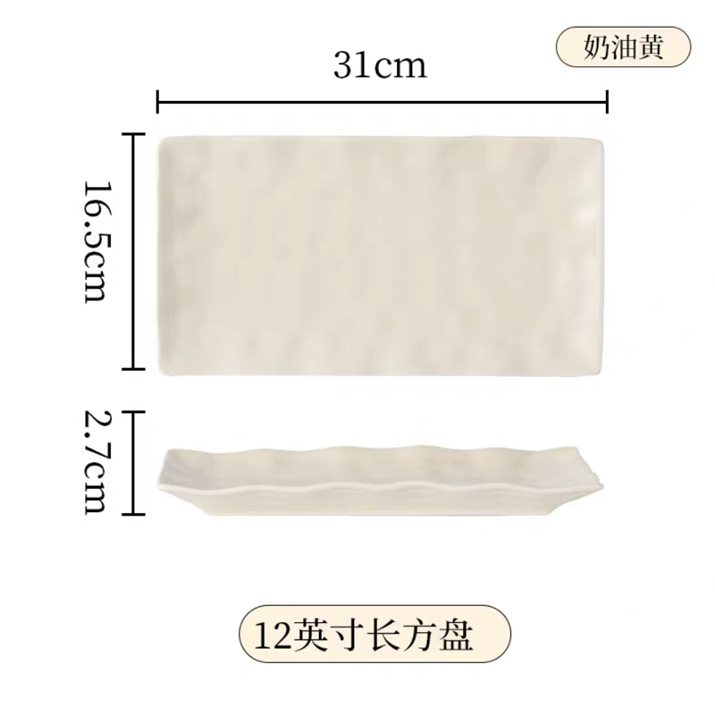 手捏纹12英寸长方盘【奶白】