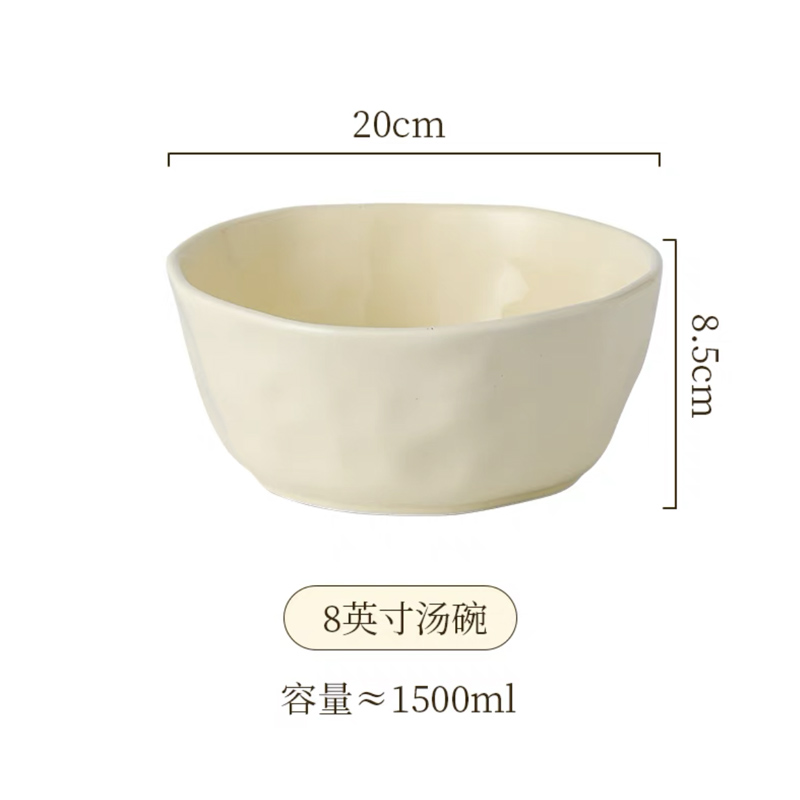 手捏纹8英寸汤碗【奶白】