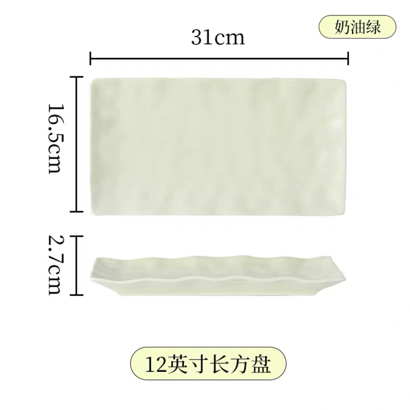 手捏纹12英寸长方盘【奶绿】