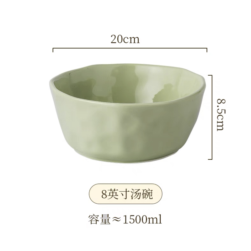 手捏纹8英寸汤碗【奶绿】