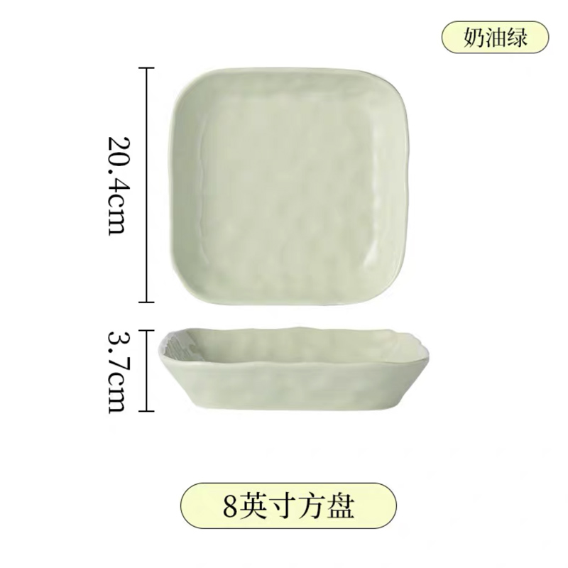 手捏纹8英寸方形盘【奶绿】