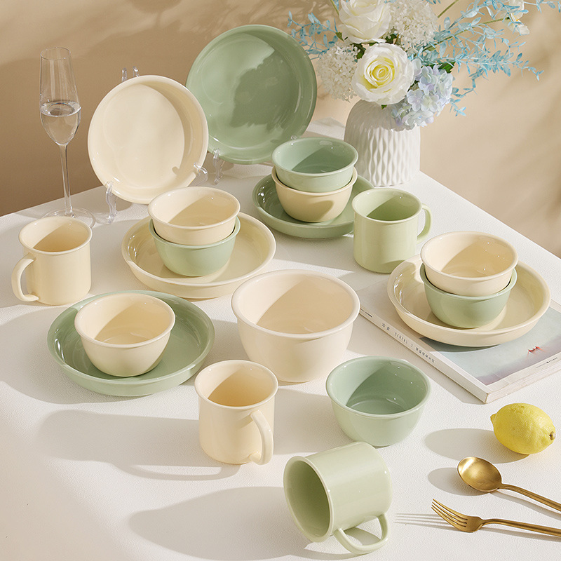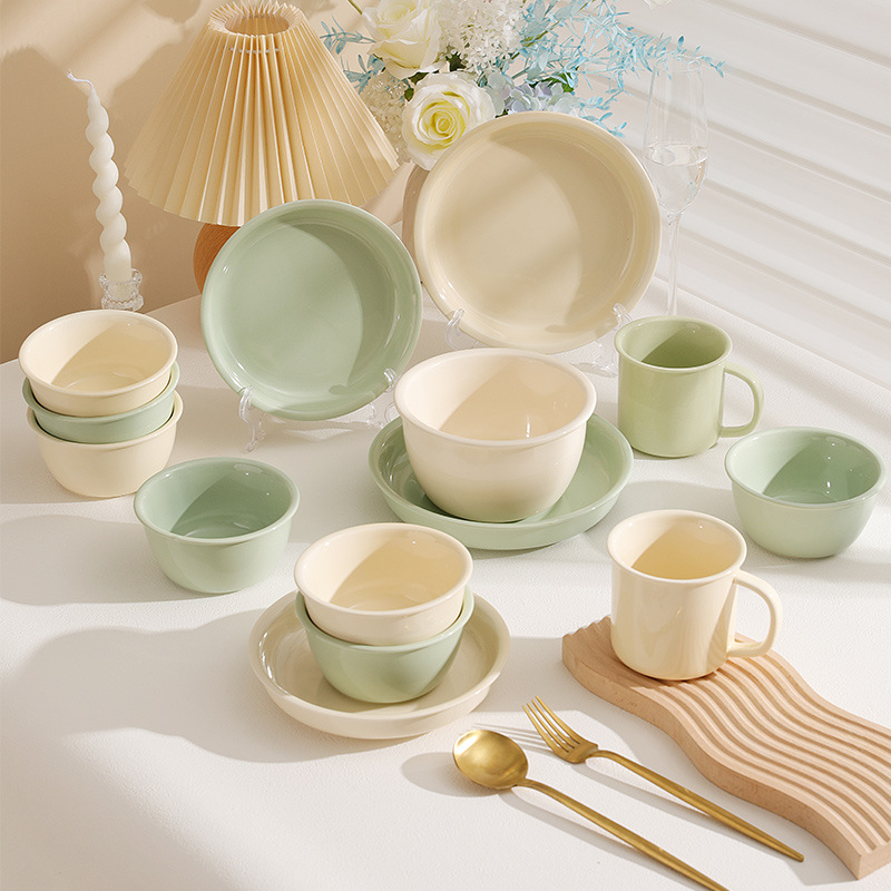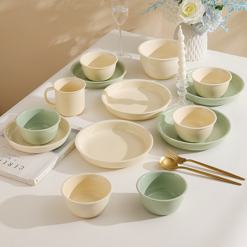 奶油风陶瓷碗碟亮光釉下彩家用饭碗盘子马克杯高级感碗盘餐具礼盒