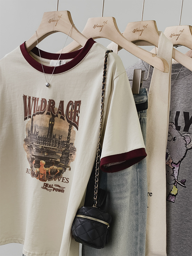 纯棉正肩短袖t恤女夏季新款设计感小众美式复古宽松上衣体恤