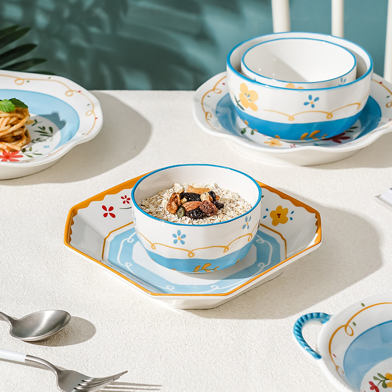 花叙陶瓷碗碟餐具釉下彩家用高颜值饭碗盘子鱼盘乔迁送礼礼盒套组