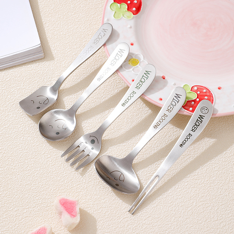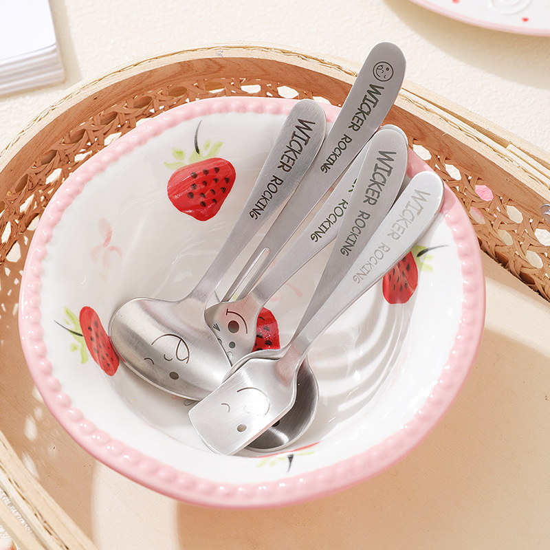 可爱304不锈钢笑脸勺子叉子ins风可爱冰淇淋甜品勺叉水果叉宝宝勺