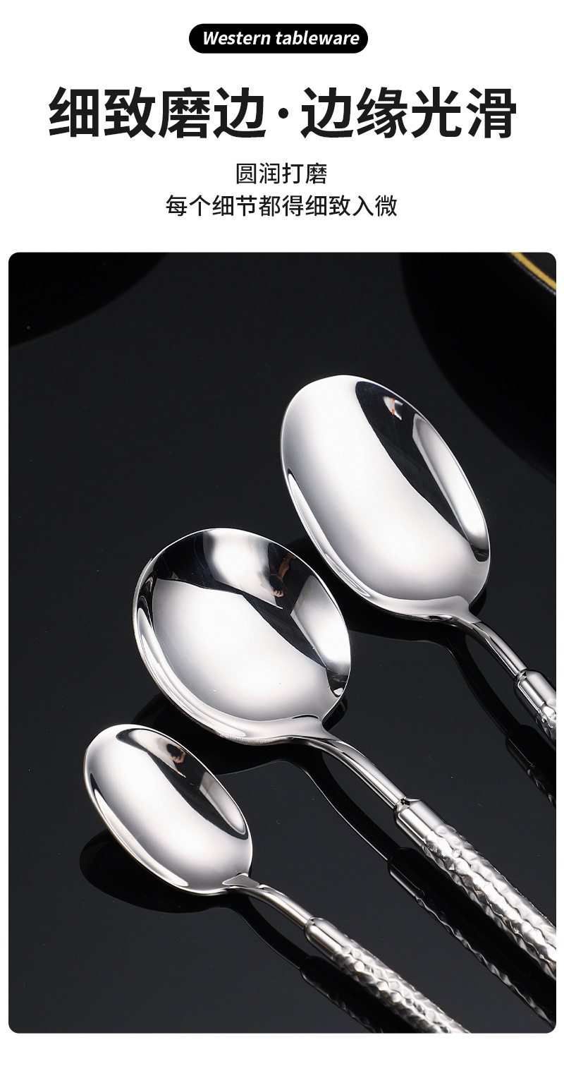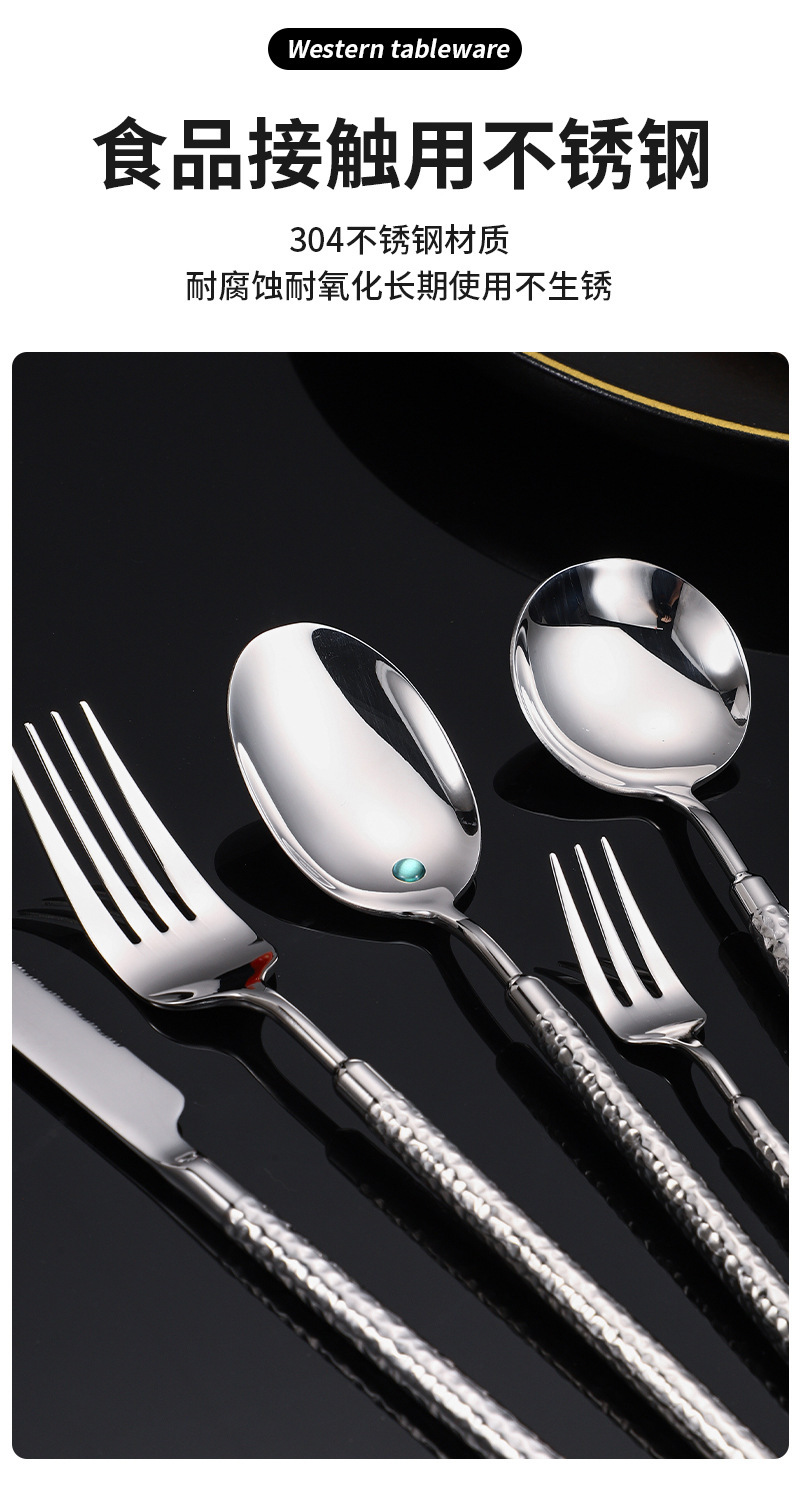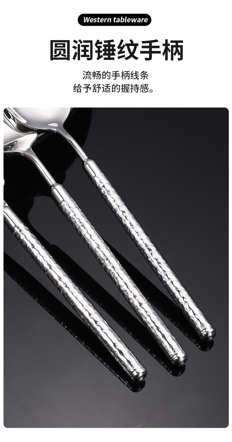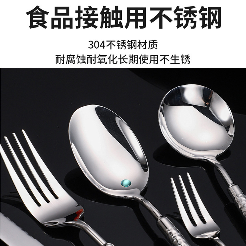 304不锈钢圆钻锤纹刀叉勺实心手柄酒店西餐牛排刀叉ins高级感餐具