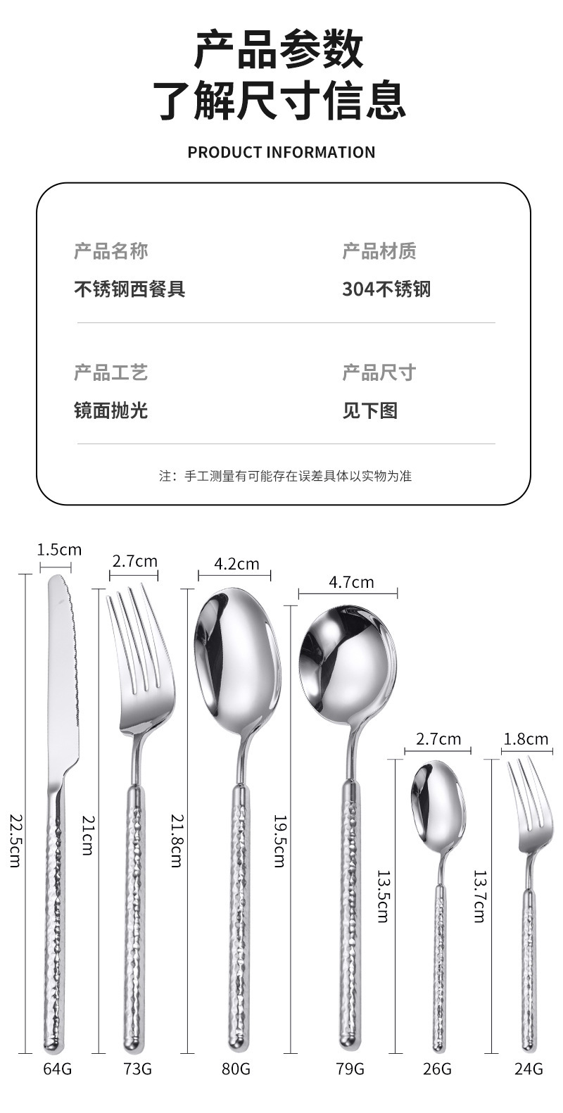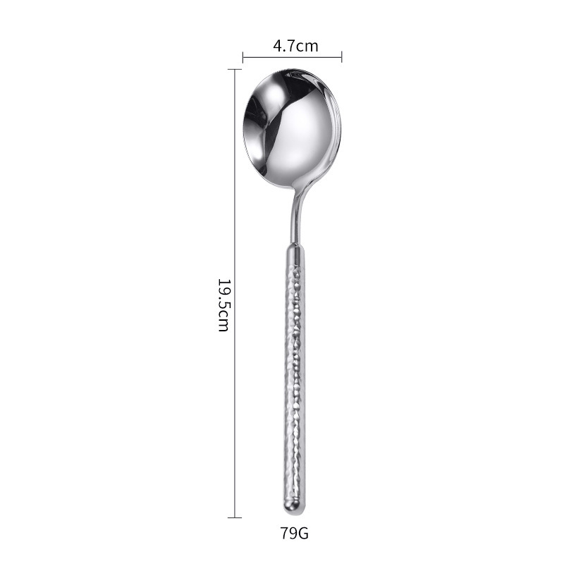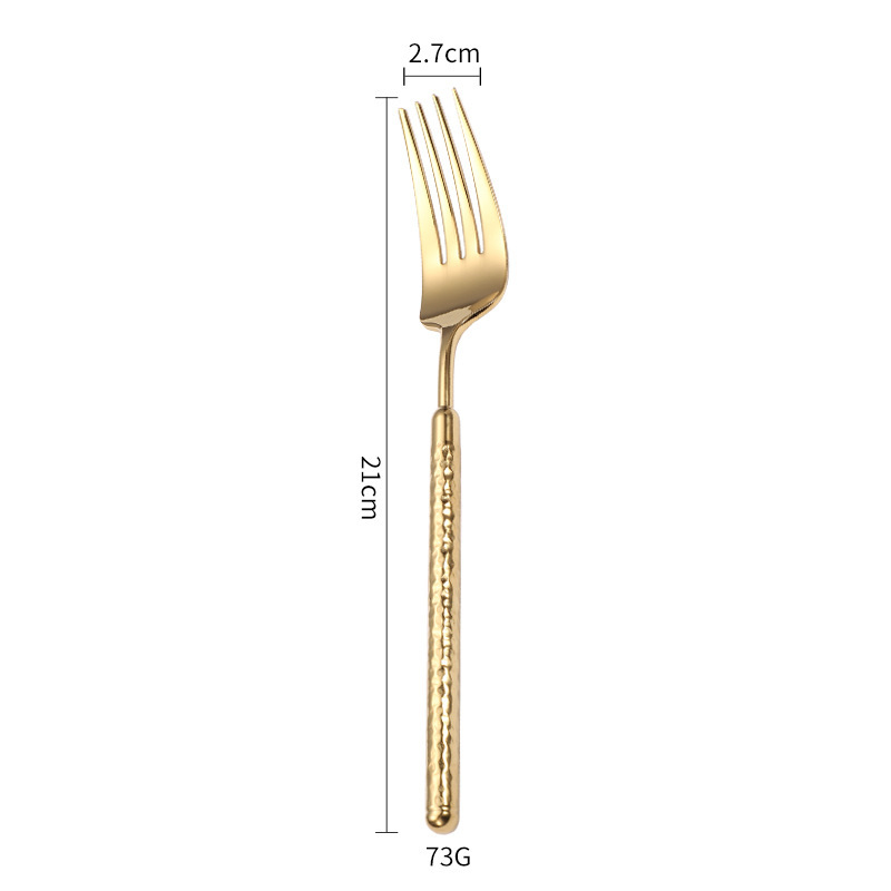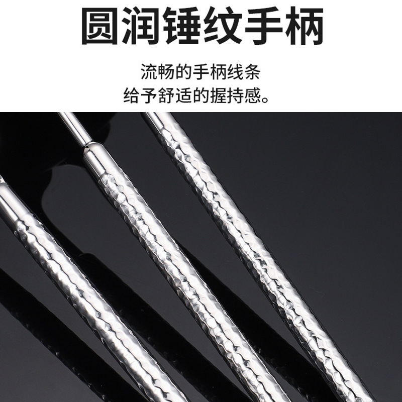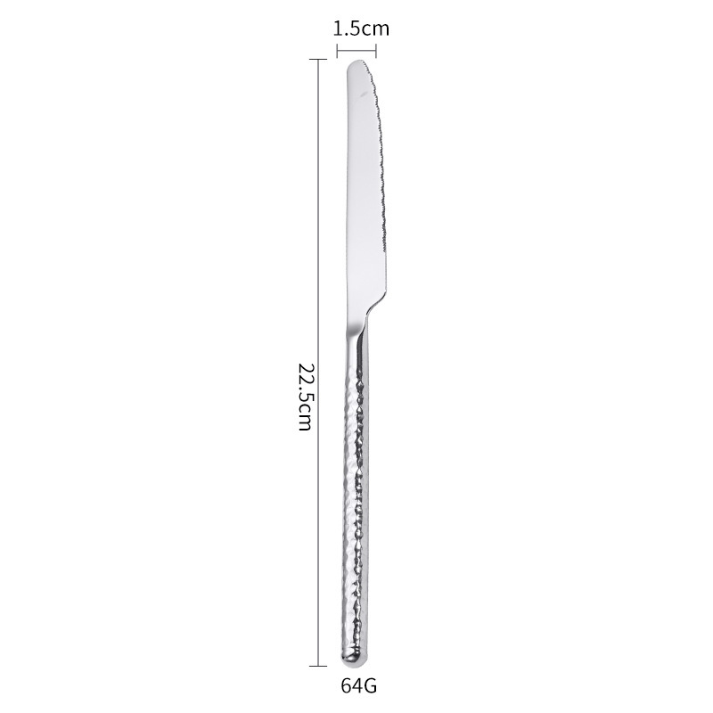 304不锈钢圆钻锤纹刀叉勺实心手柄酒店西餐牛排刀叉ins高级感餐具