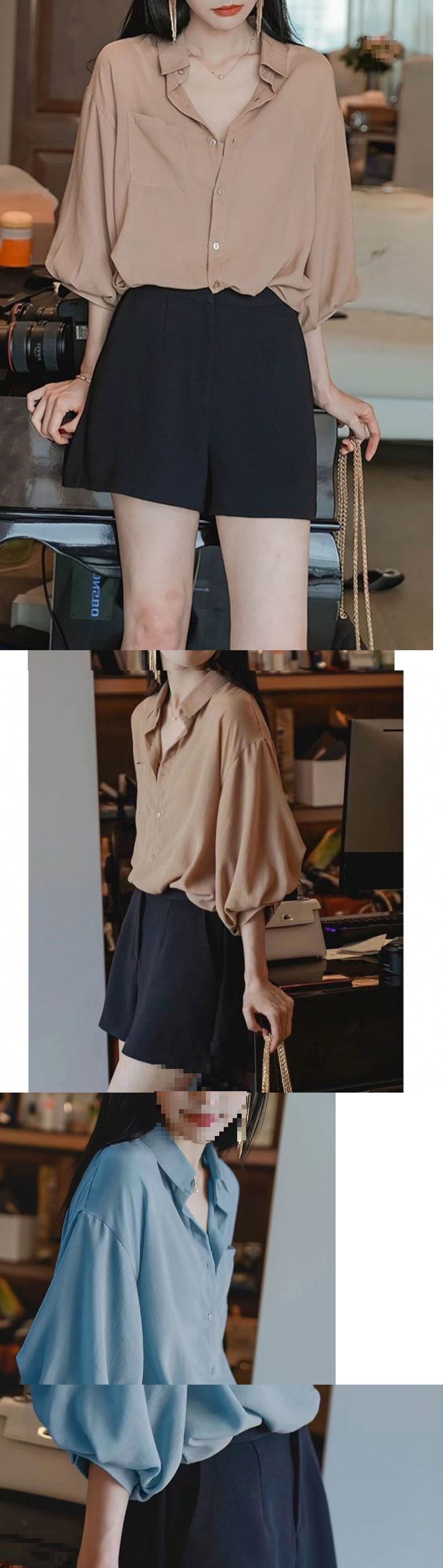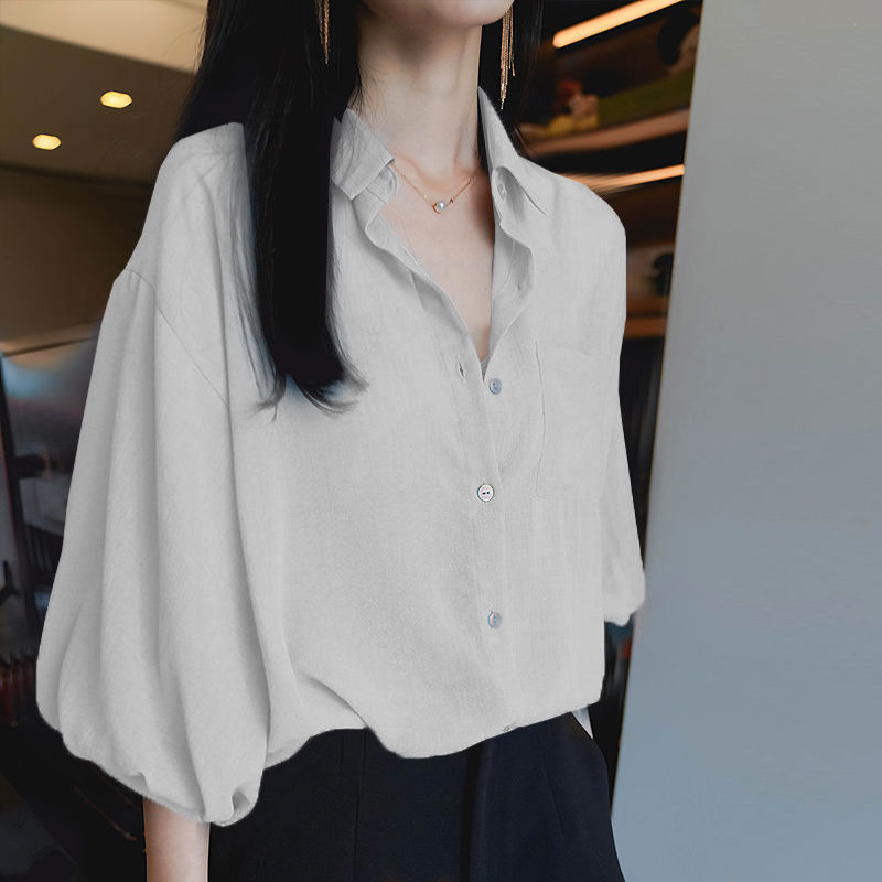雪纺上衣女夏季设计感小众灯笼袖衬衫新款韩版五分袖复古宽松衬