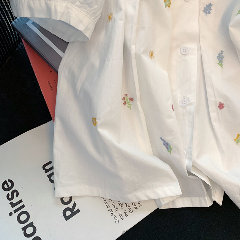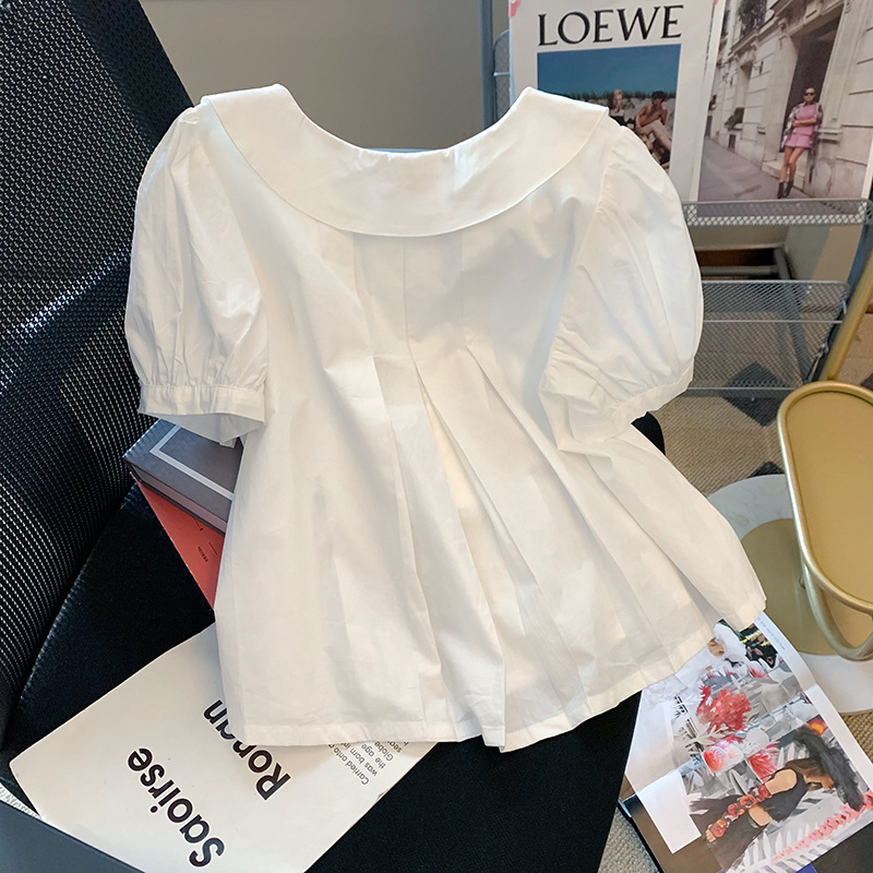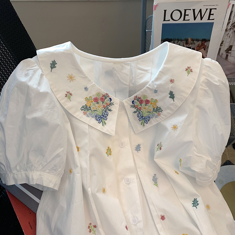 法式重工可爱娃娃领短袖衬衫女百搭夏季设计感甜美系chic减龄上衣