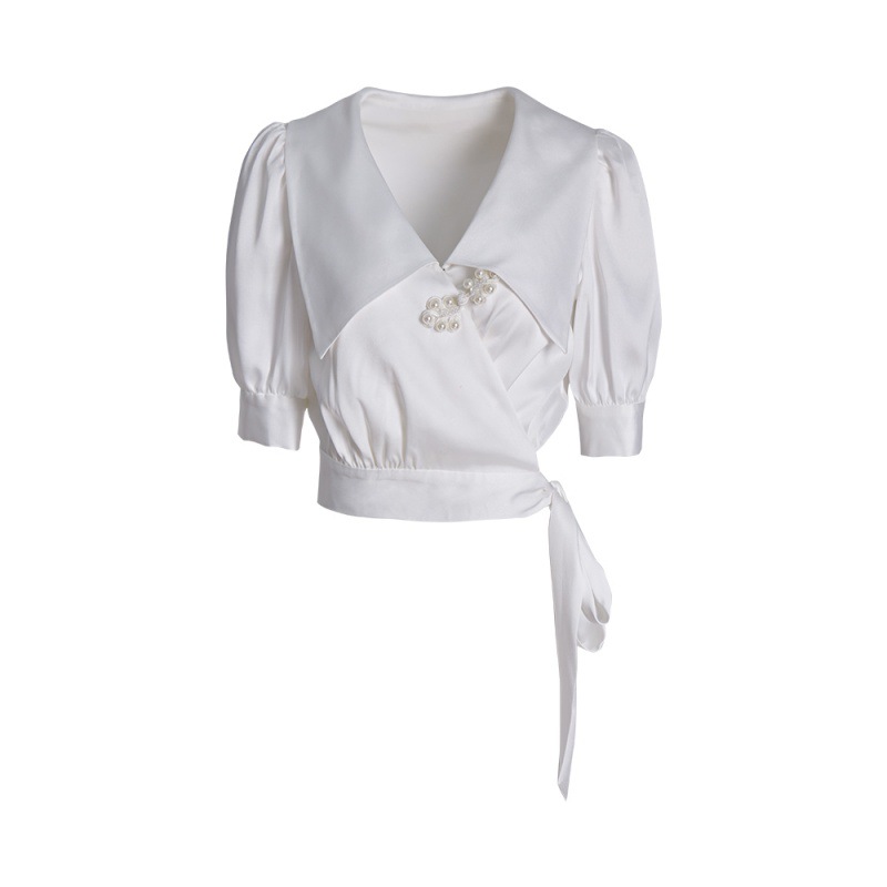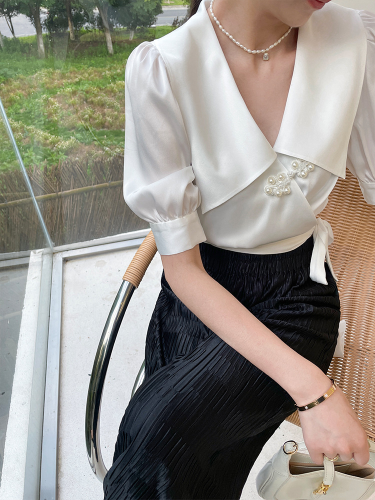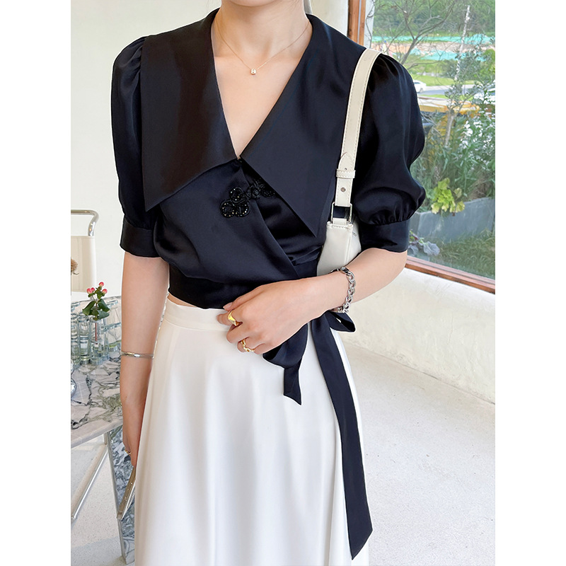 夏季短袖衬衫复古盘扣国风旗袍衬衫女质感琉光小衫设计上衣