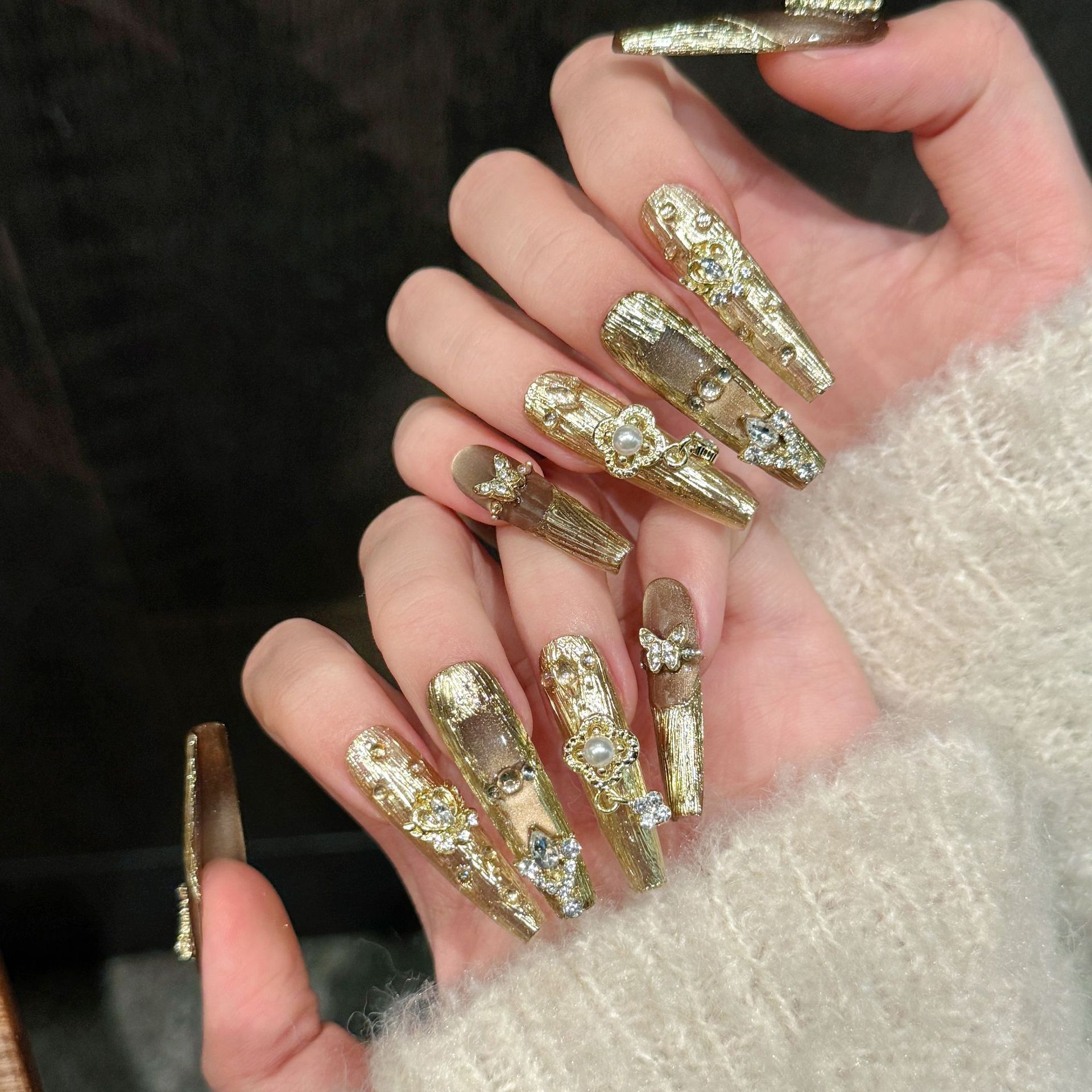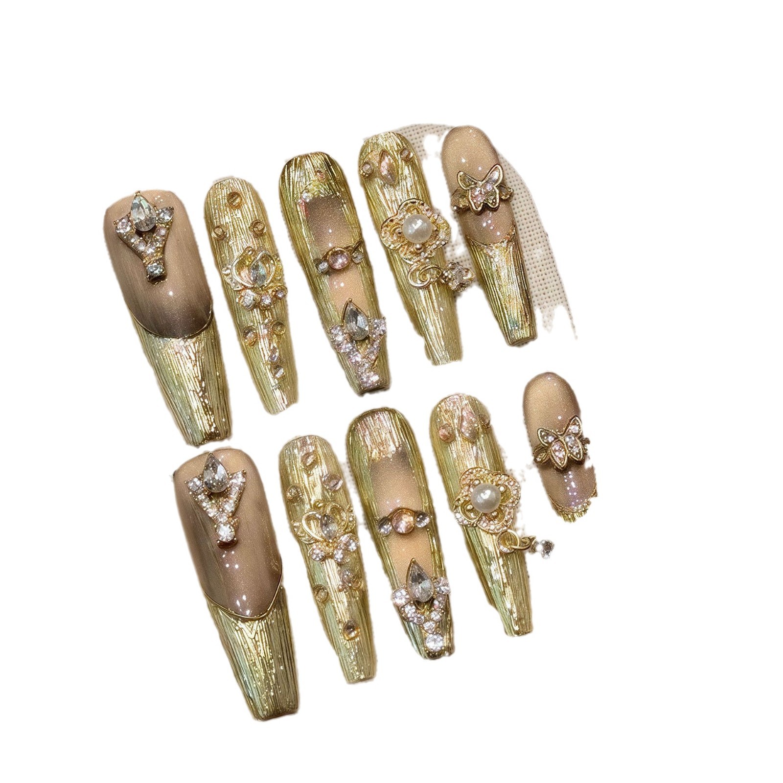 艺禾 布契拉提富贵复古奢华镀金镶钻石重工金色锆石手工穿戴甲