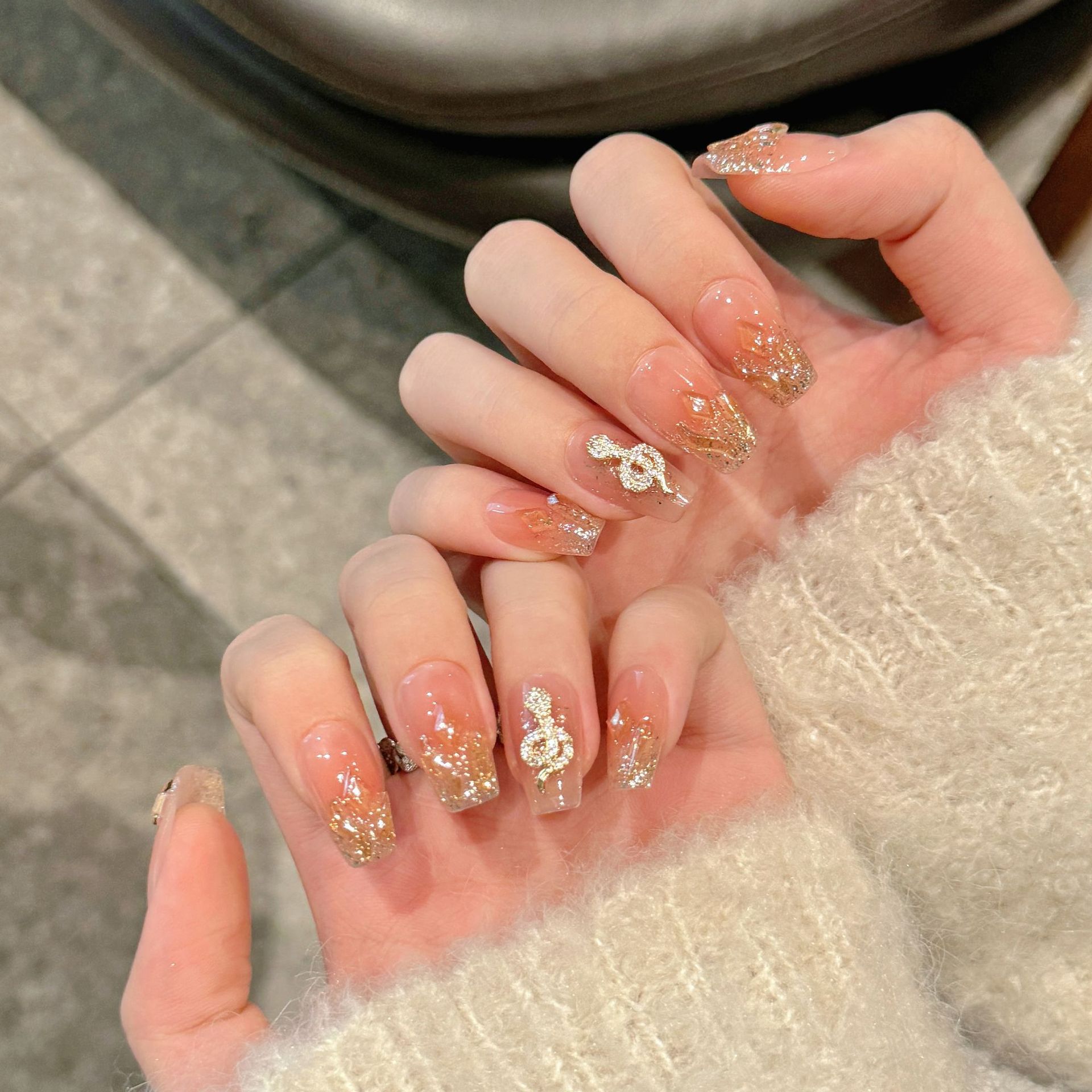 艺禾美甲 烫金蛇蛇年纯欲腮红渐变极光钻显白简约风纯手工穿戴甲
