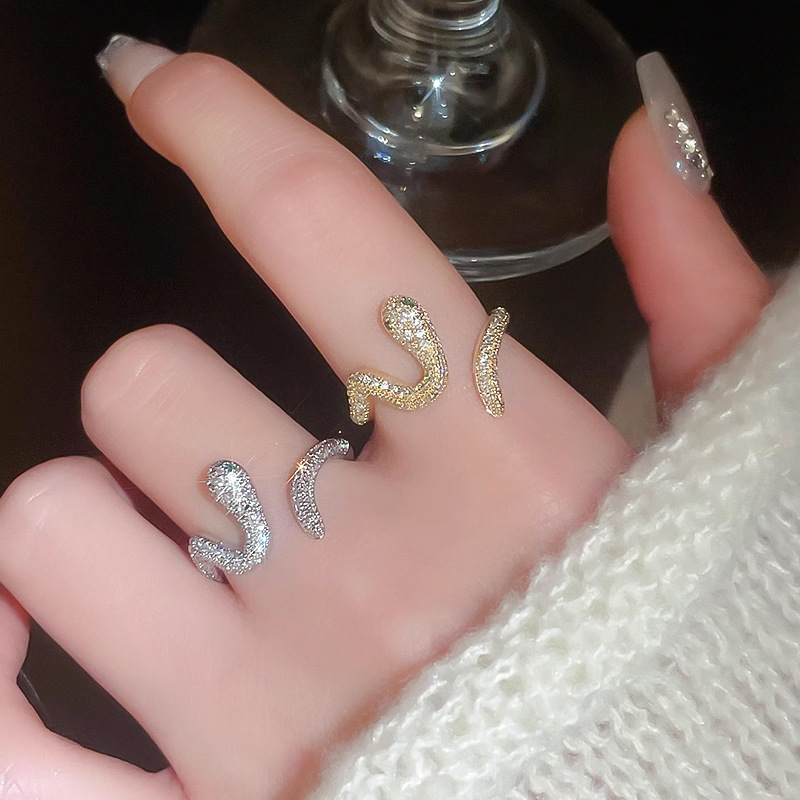 小红书爆款时尚满钻灵蛇戒指2025新款爆闪小金蛇小银蛇生肖指环女