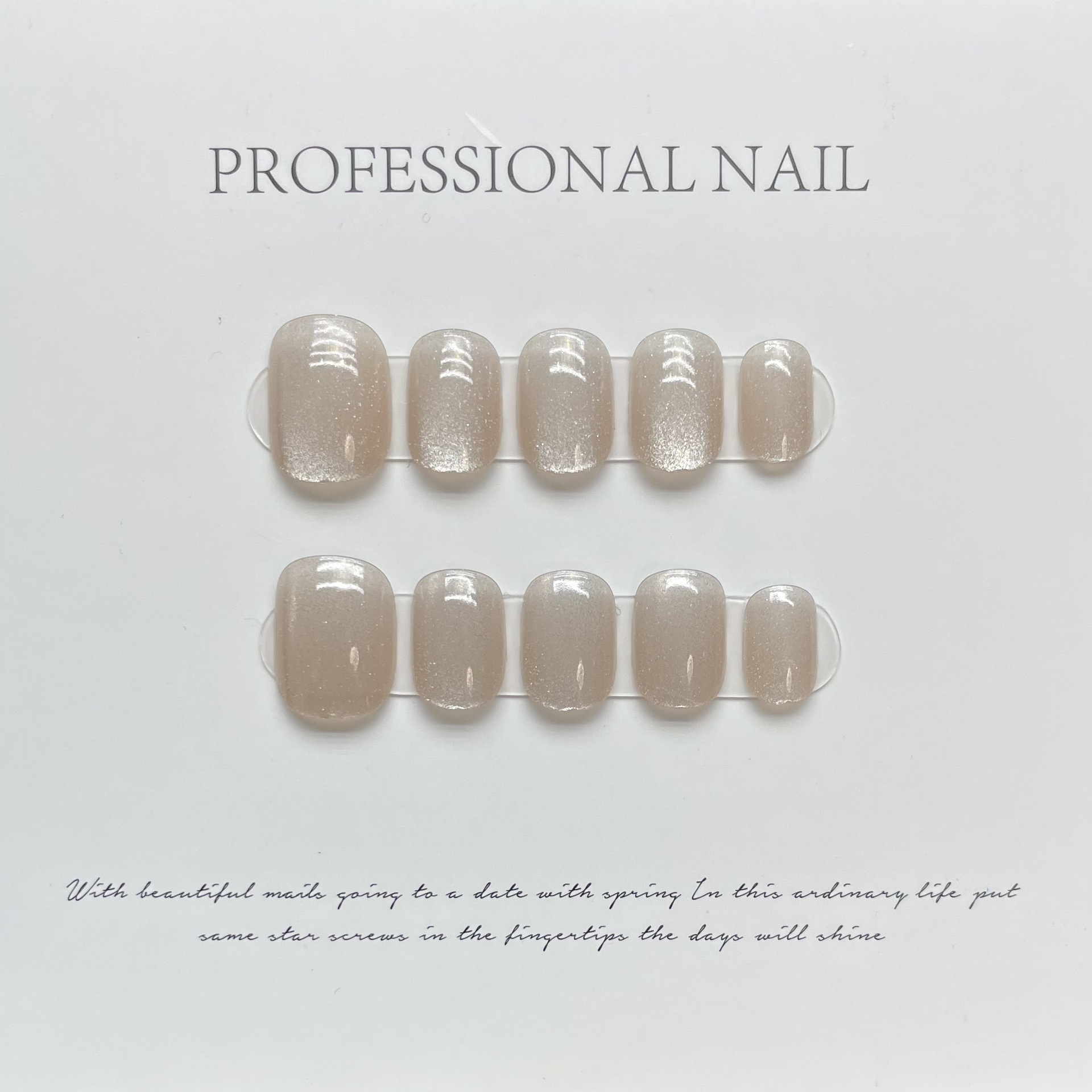 多巴胺手工穿戴甲香槟猫眼手工纯色短款美甲七彩镭射彩虹猫眼