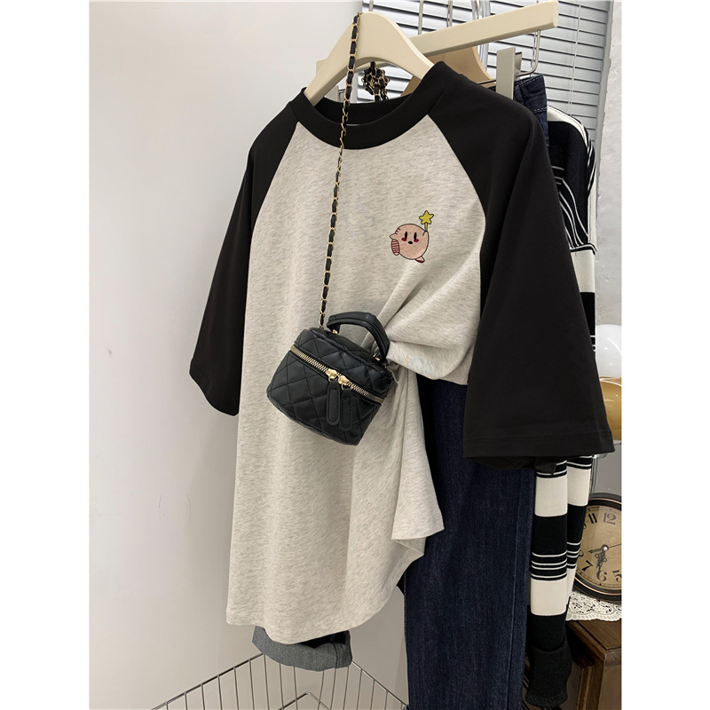 大码女装韩系插肩袖t恤女chic复古东大门休闲短袖ins潮夏纯棉上衣