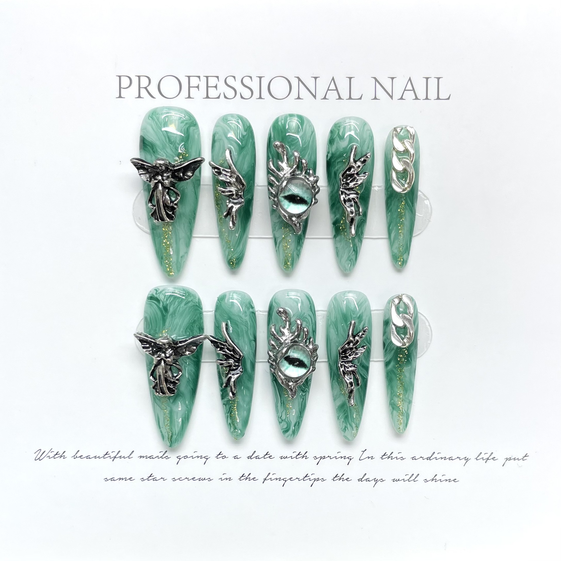 【欧美重工】纯手工穿戴甲液态翅膀天使之瞳长款美甲贴片穿戴指甲