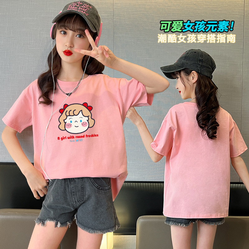 夏装女童t恤纯棉短袖洋气半袖t上衣夏季可爱卡通印花小女孩儿童装