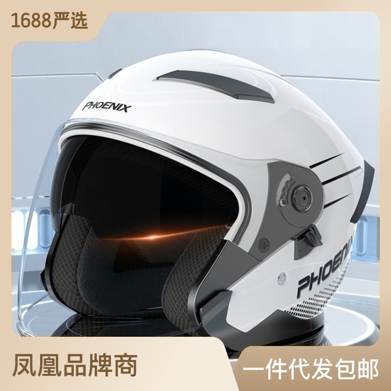 摩托车双镜头盔 男女士四季冬季保暖机车半盔帽 电动电瓶车头盔