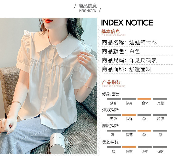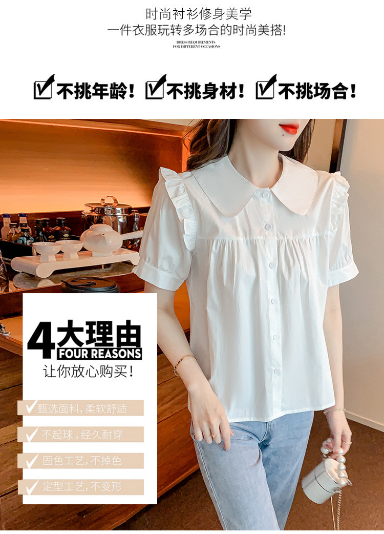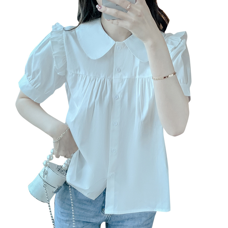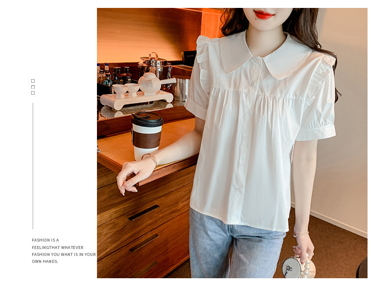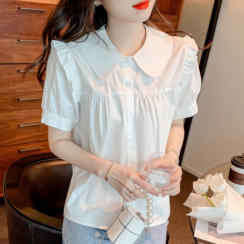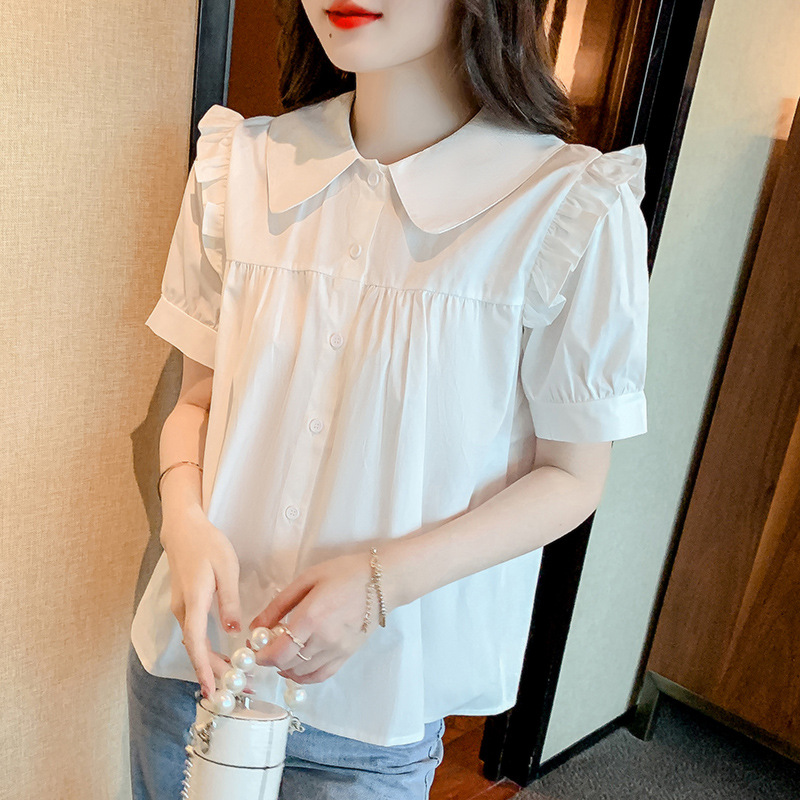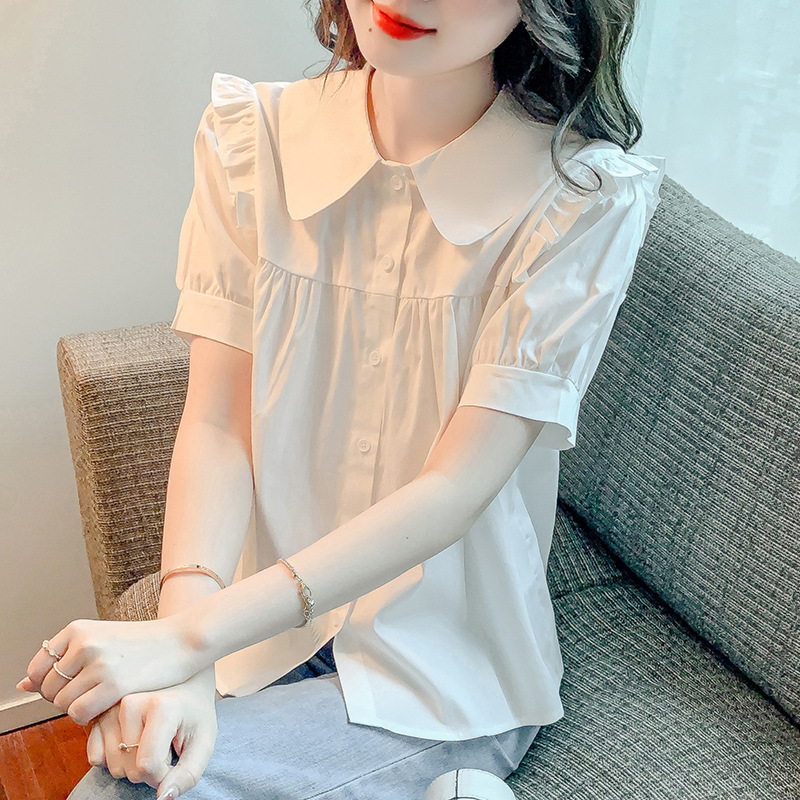 夏季新款娃娃领清新学院风白色衬衫女日系复古甜美减龄衬衣女
