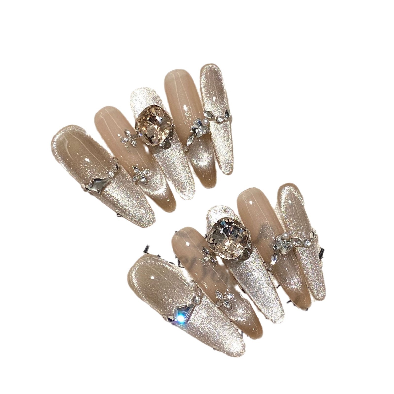 艺禾轻奢千金穿戴甲秋冬美拉德爆闪渐变斜边碎钻爆闪美拉德可拆卸