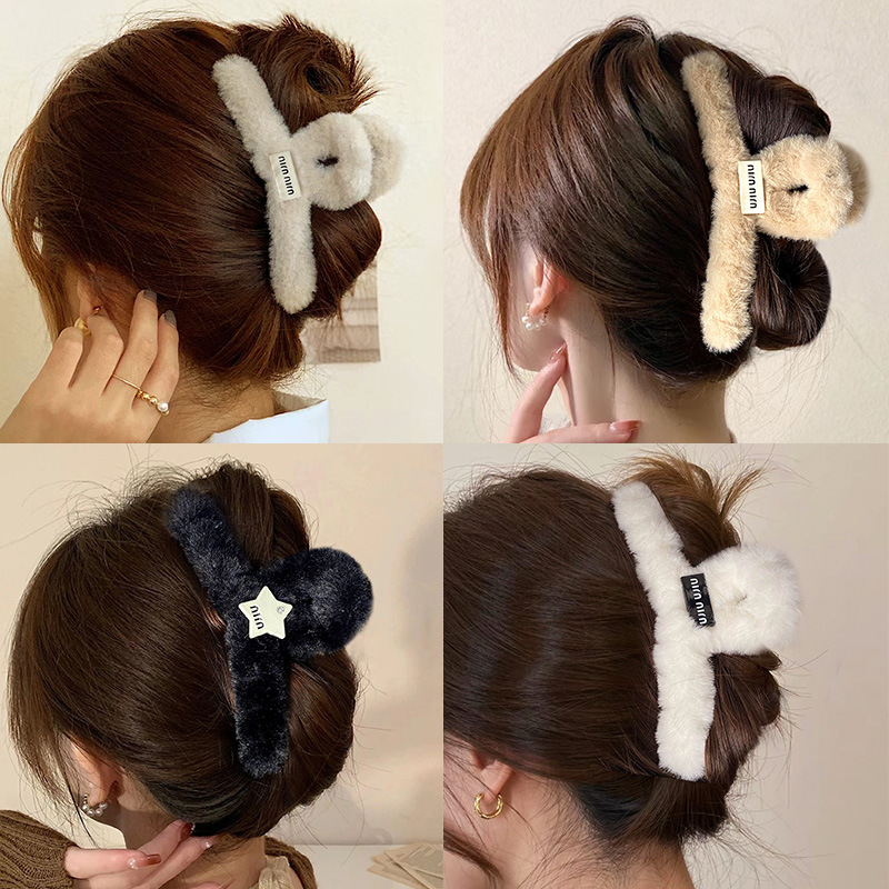 毛绒抓夹大号发夹女后脑勺盘发鲨鱼夹新款高级感发饰百搭夹子头饰