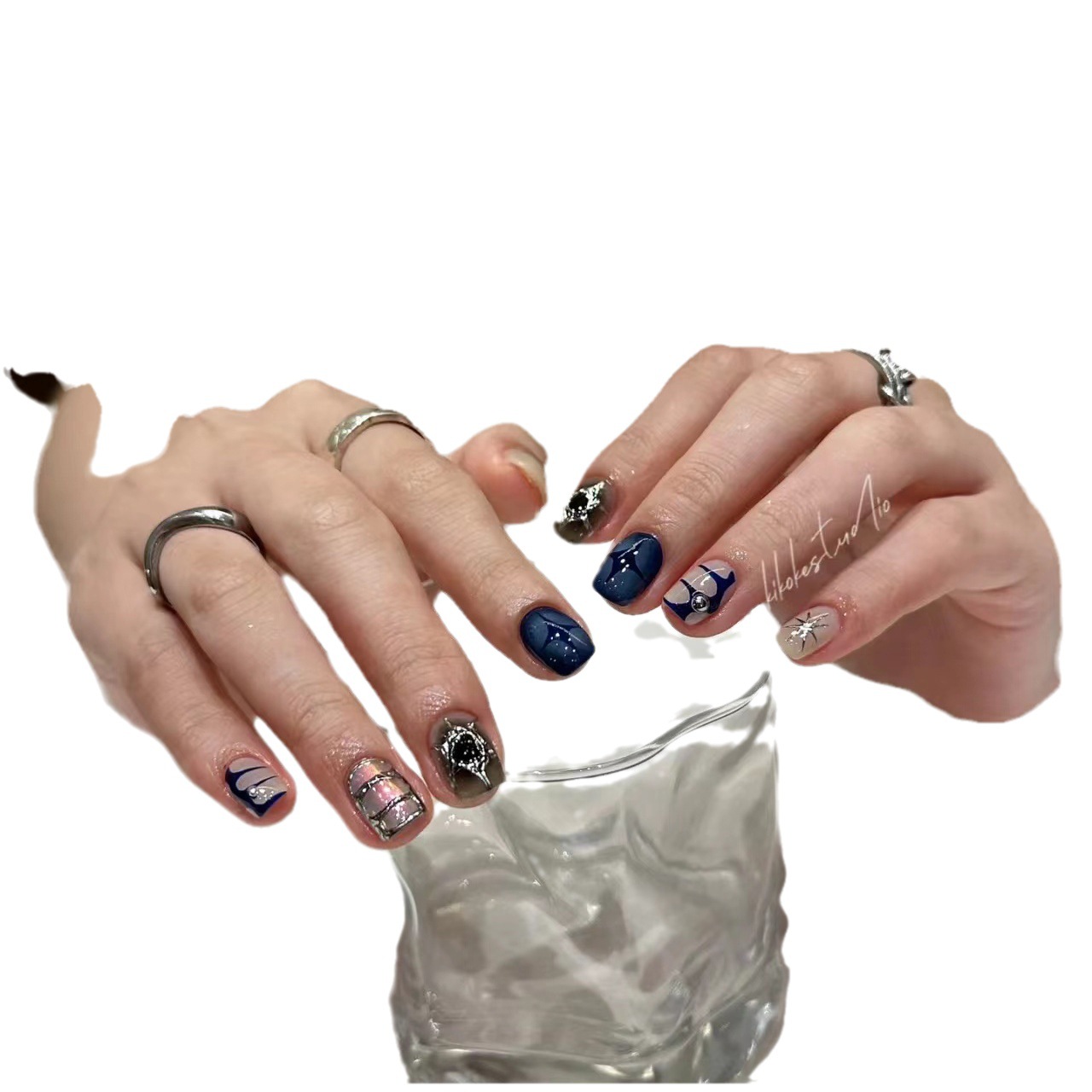 纯手工美甲穿戴甲假指甲贴片小众个性辣妹恶魔之眼四芒星金属魔镜