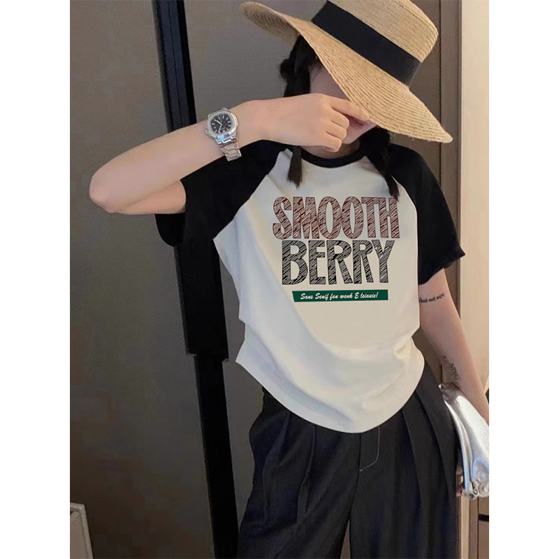 2025新款夏季撞色插肩纯棉短袖t恤女ins时尚百搭减龄显瘦上衣胖mm