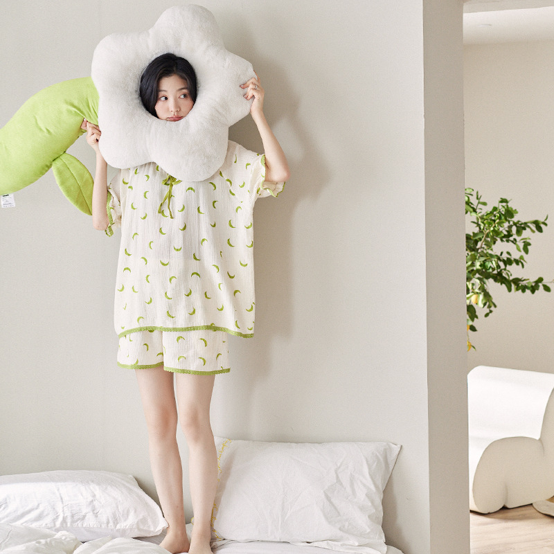 【凉感型】睡衣女夏款纯棉纱布短袖甜美可外穿梭织棉家居服两件套