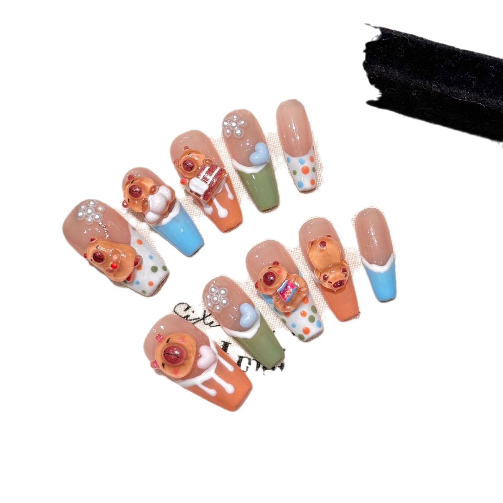艺禾纯手工穿戴甲可爱卡皮巴拉土拨鼠糖果色夏天美甲可拆卸假指甲
