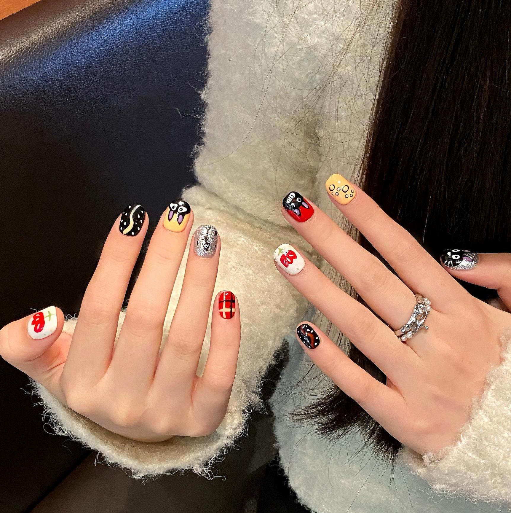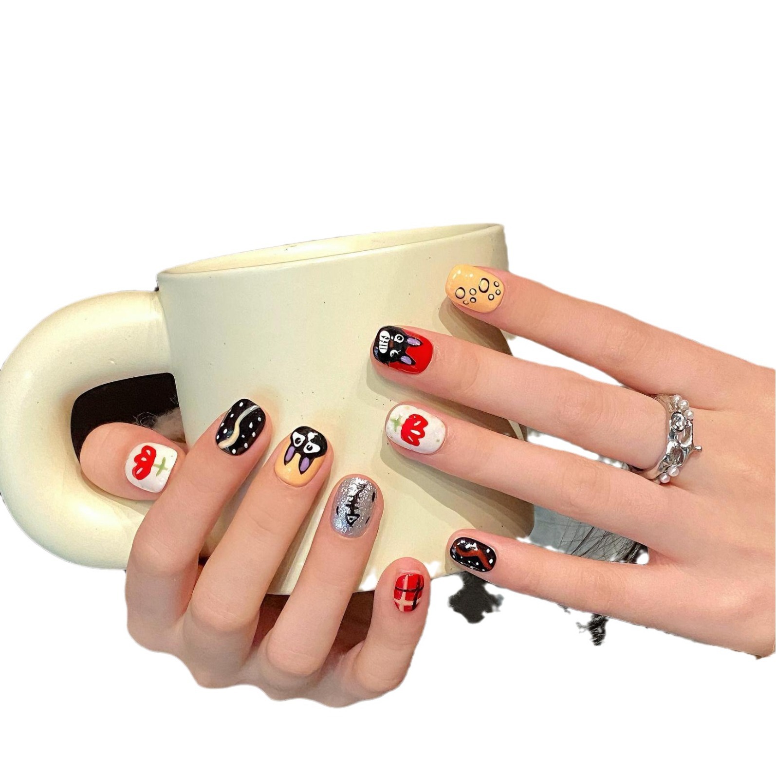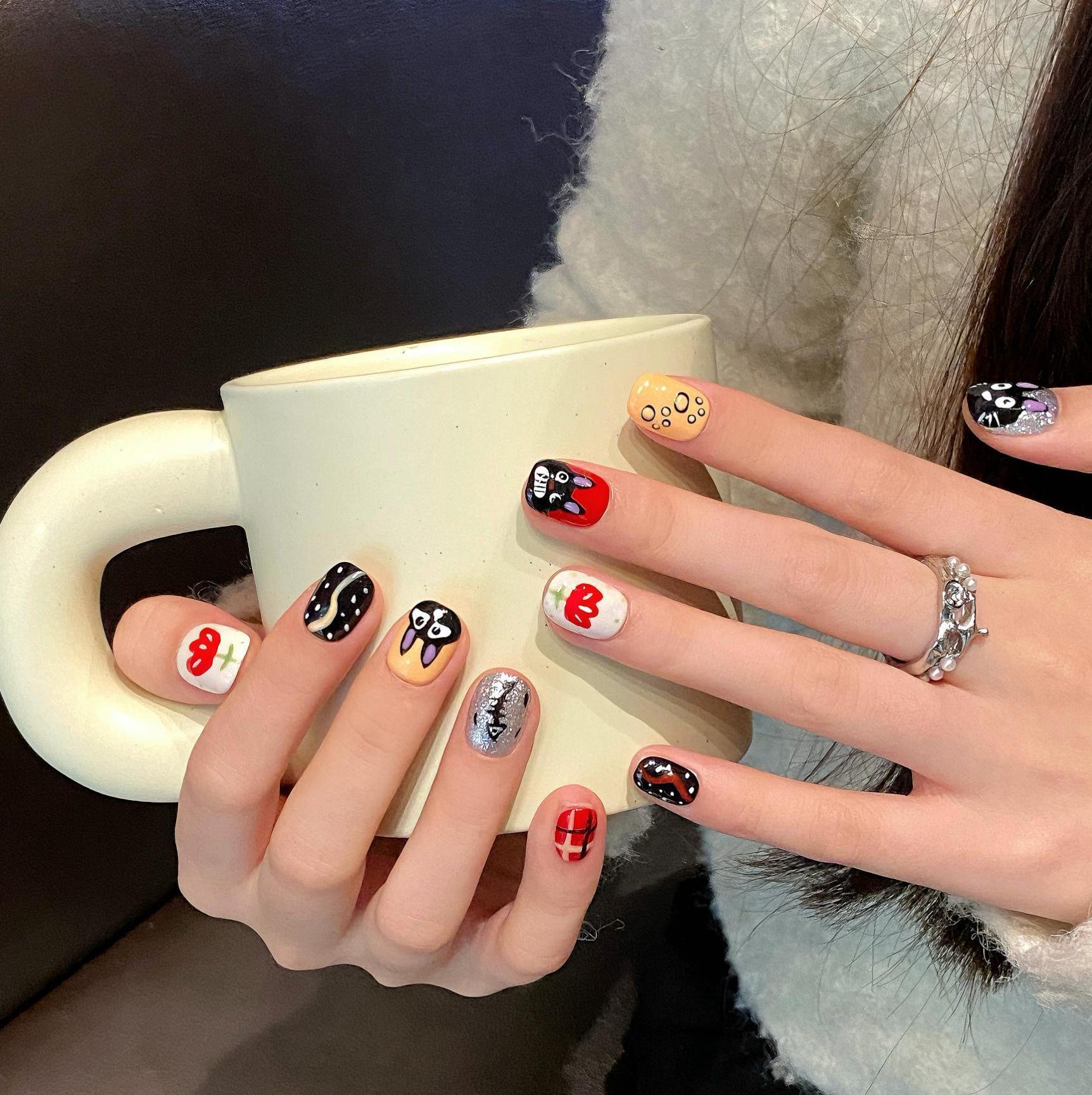 手工穿戴甲短款甲片可爱手绘猫咪卡通美甲假指甲贴片美甲成品批发