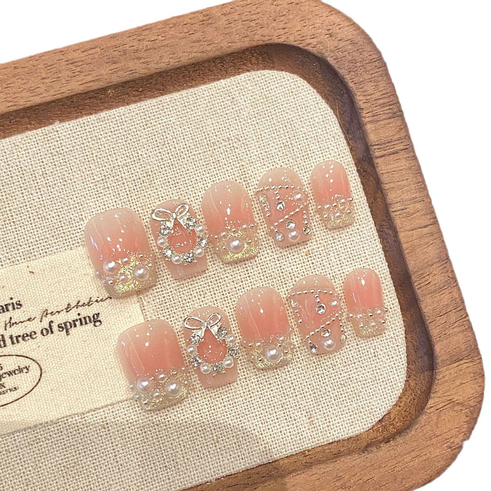 艺禾梦幻圣诞夜法式珍珠花环高级感圣诞纯手工穿戴甲成品美甲短款