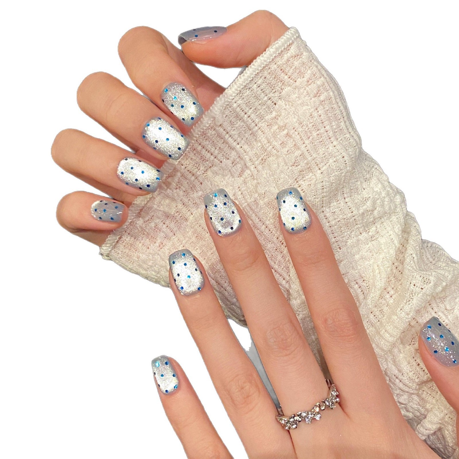 艺禾 星空春夏宽光猫眼美甲亮片波点气质简约短款纯手工穿戴甲