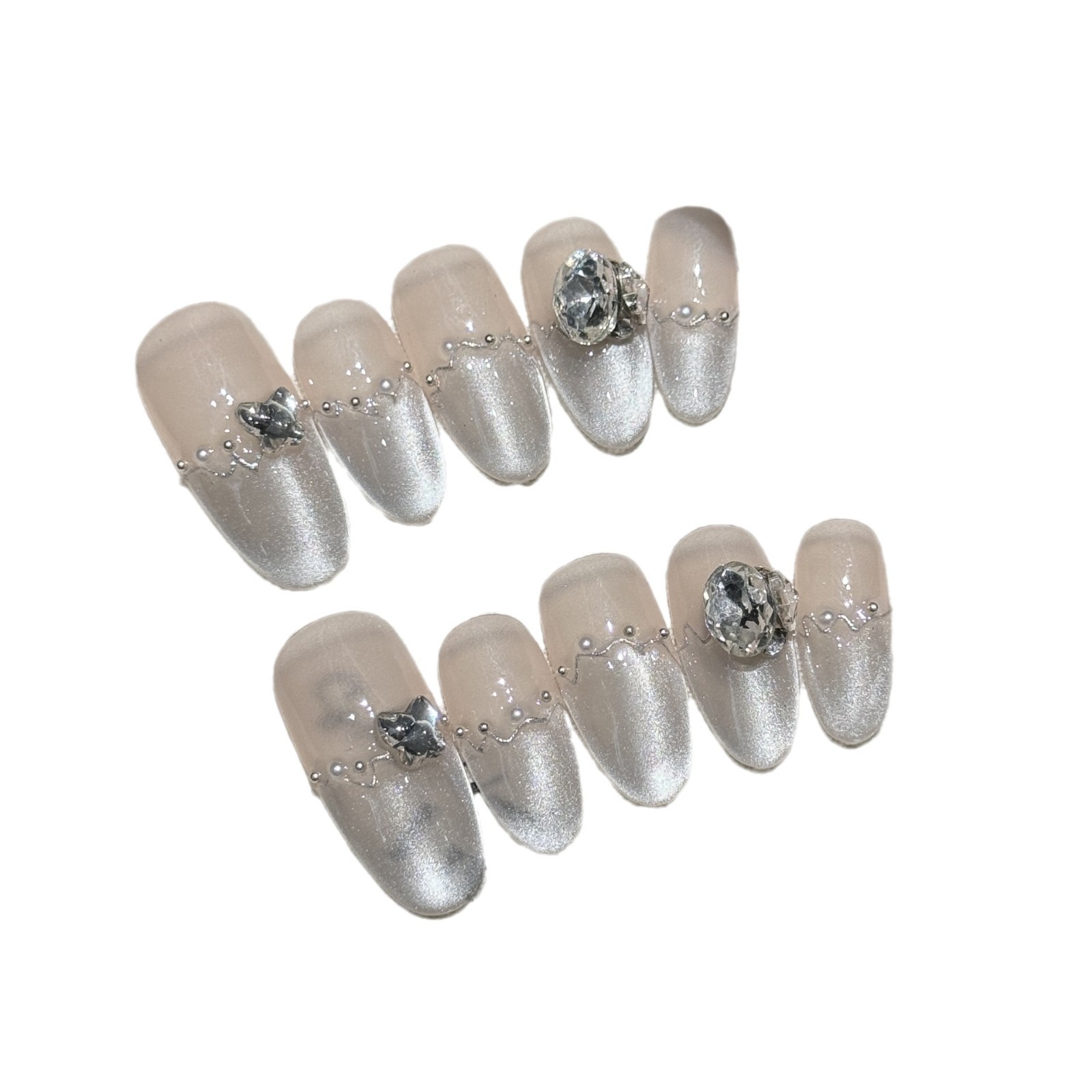 【塞纳河畔】爆闪K9钻玻璃珠猫眼纯手工穿戴甲纯欲氛围感长款美甲