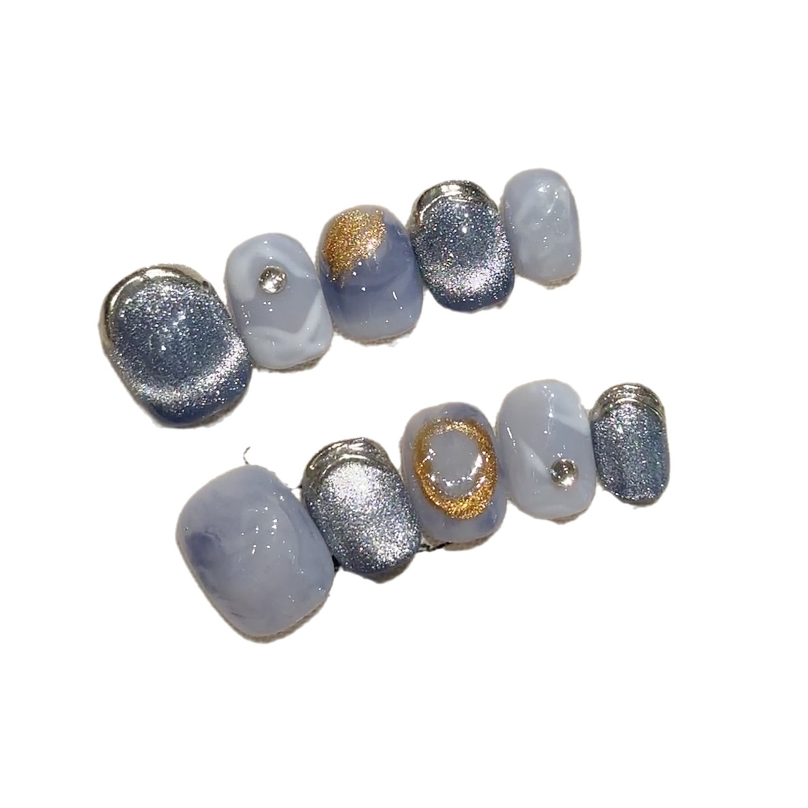 艺禾手工美甲成品日式高级蓝色宝石晕染显白短款光疗甲短款猫眼