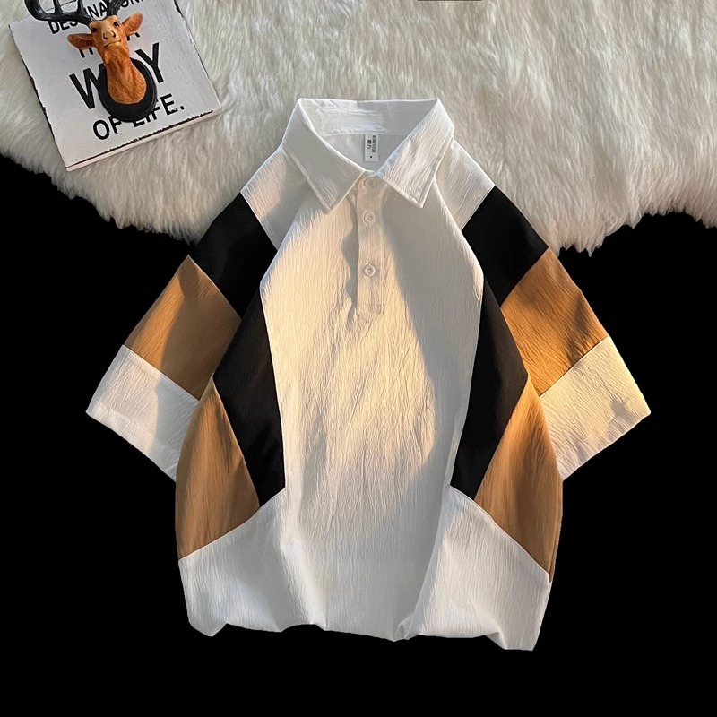FPMR丨设计感冰丝垂感衬衫男款短袖潮流半袖POLO衫痞帅日系拼接撞