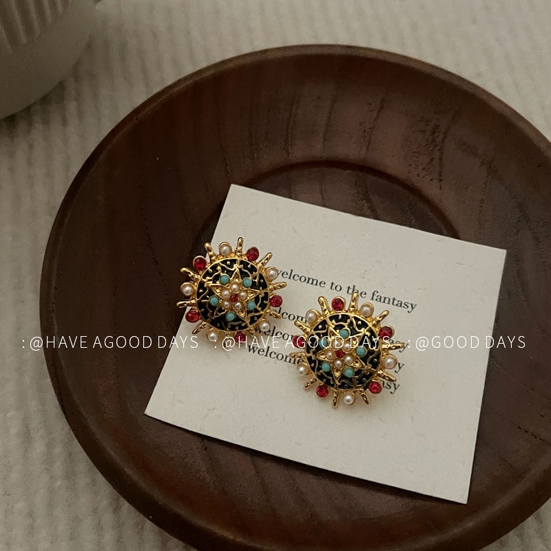 复古精致浮珍珠耳环中古西洋风气质小众重工耳饰925银针高级感~