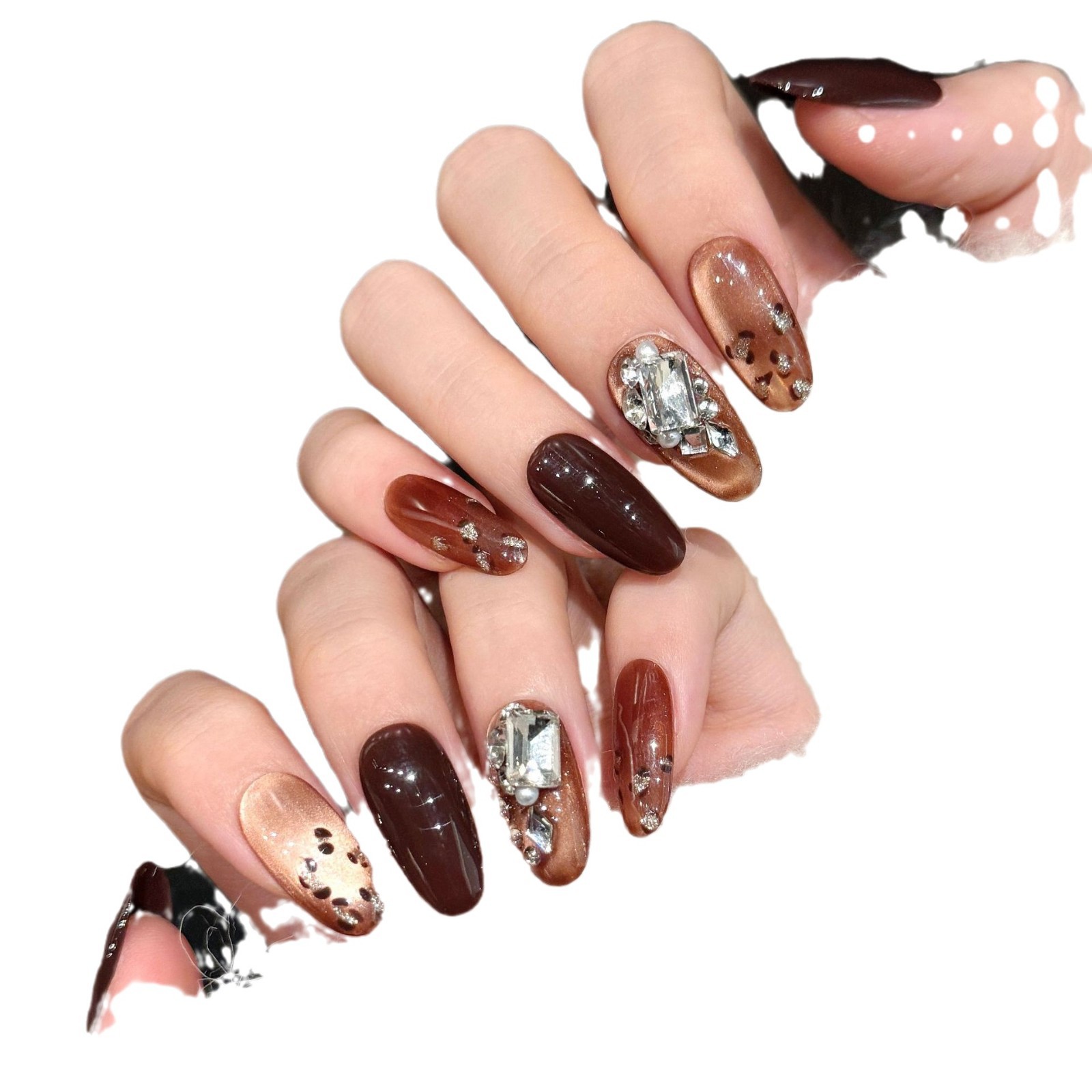 艺禾 香橙美式复古深棕手作穿戴甲中长款秋冬高级感豹纹美甲