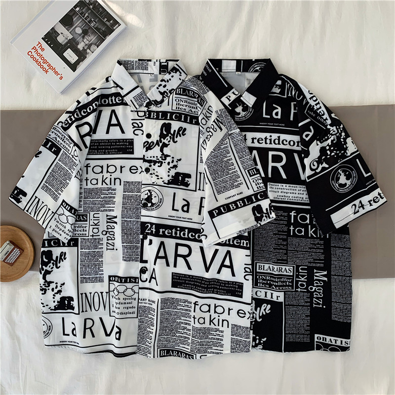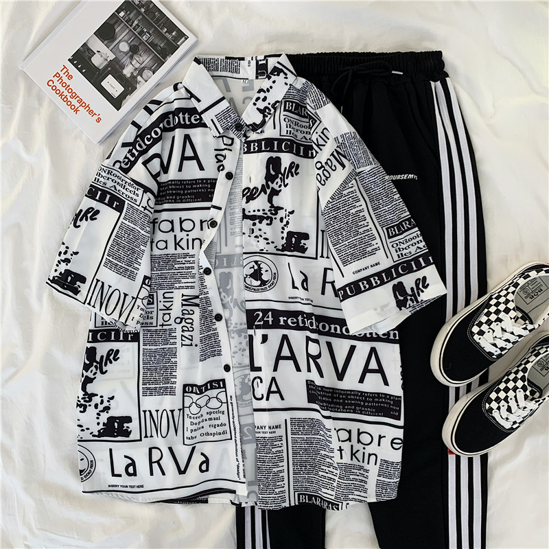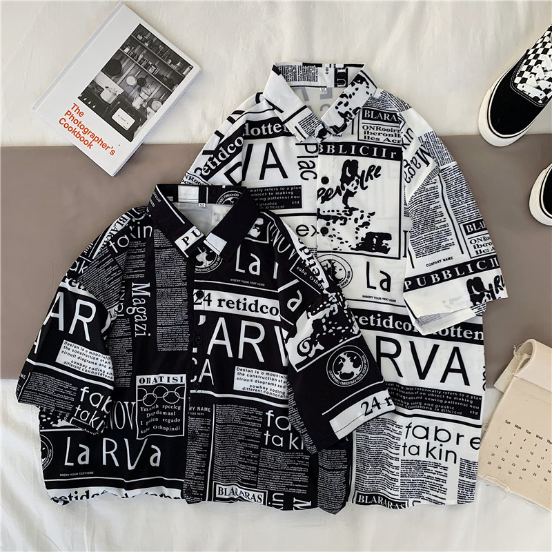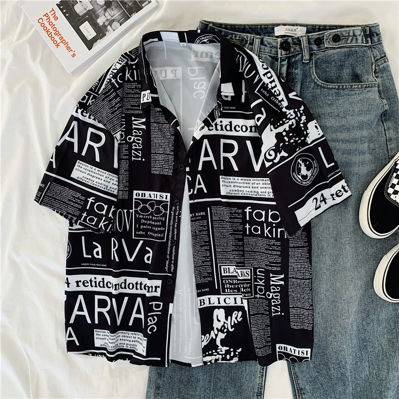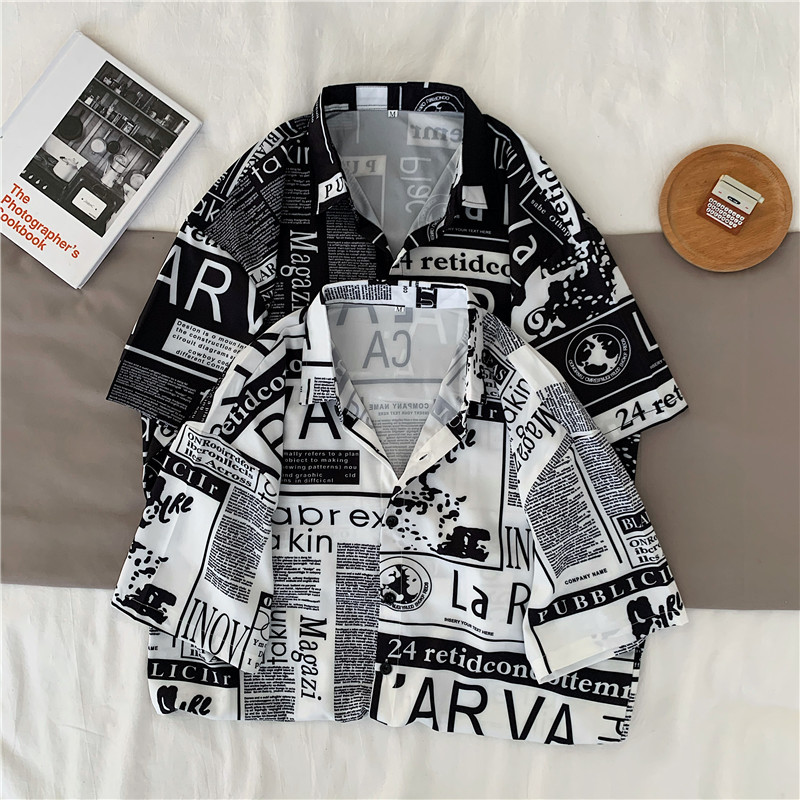 春秋夏季复古夏威夷短袖衬衫女港风宽松情侣海边沙滩花色衬衣男潮