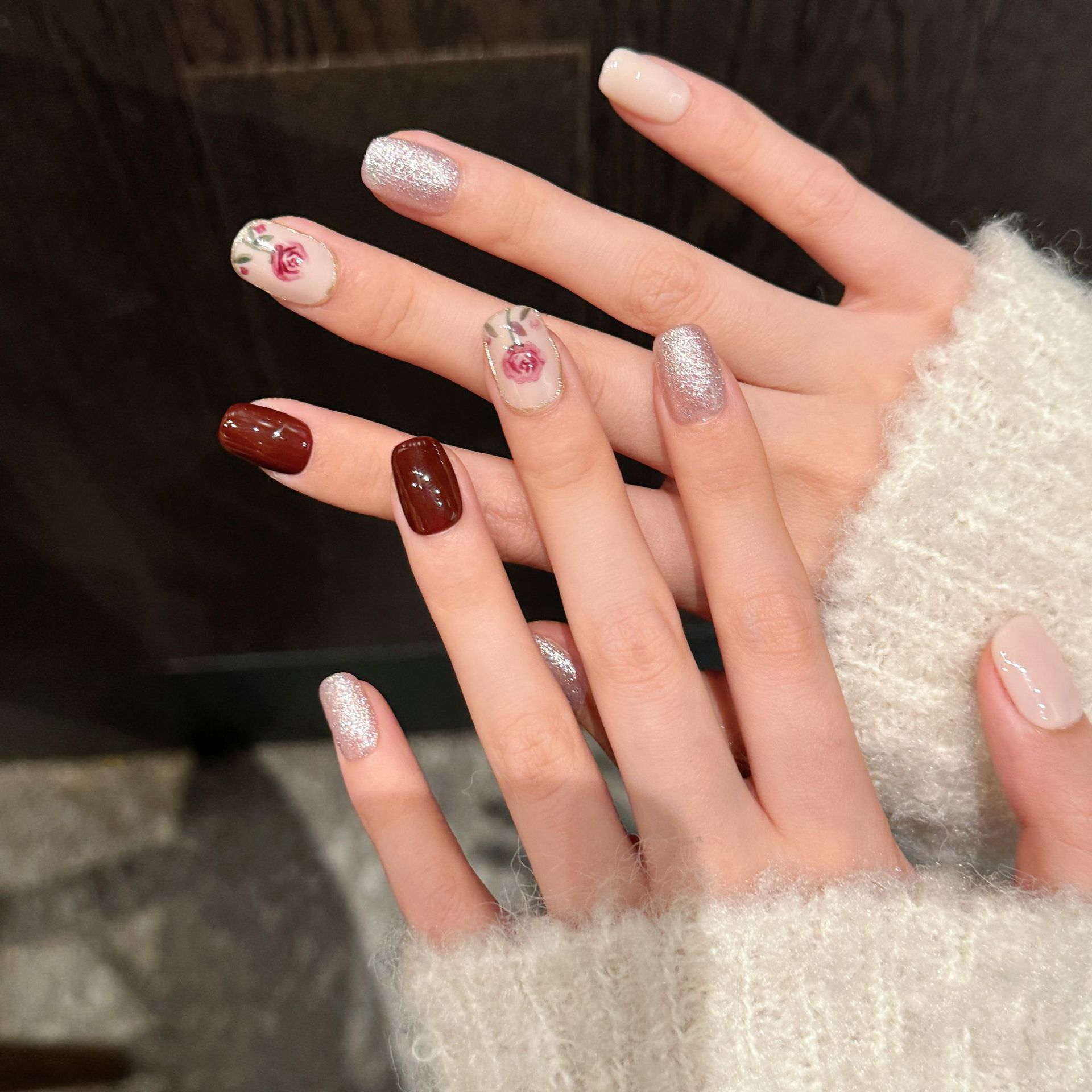 艺禾 秋冬显白玫瑰花语简约猫眼日常小短款光疗美甲穿戴甲批发
