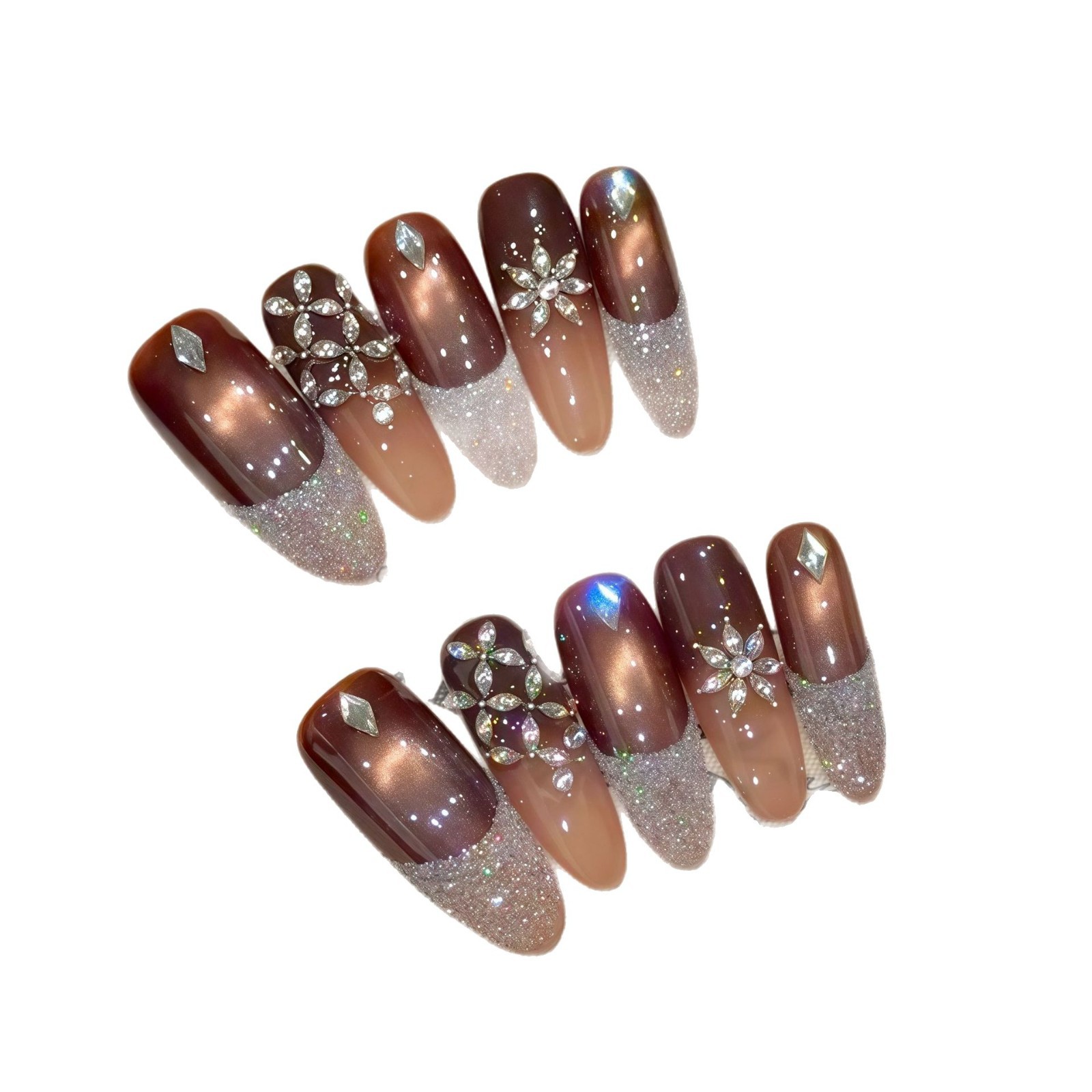 奈姿 纯手工光疗穿戴甲甄嬛护甲批发成品重复使用美甲贴片可拆