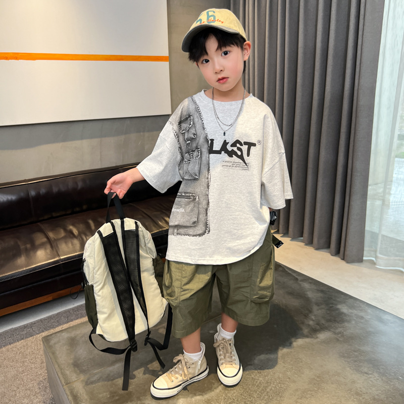 男童夏装套装新款中大童儿童痞帅男孩夏季短袖洋气时髦炸街潮