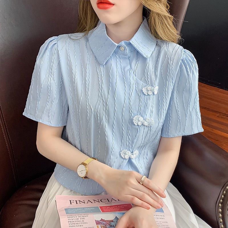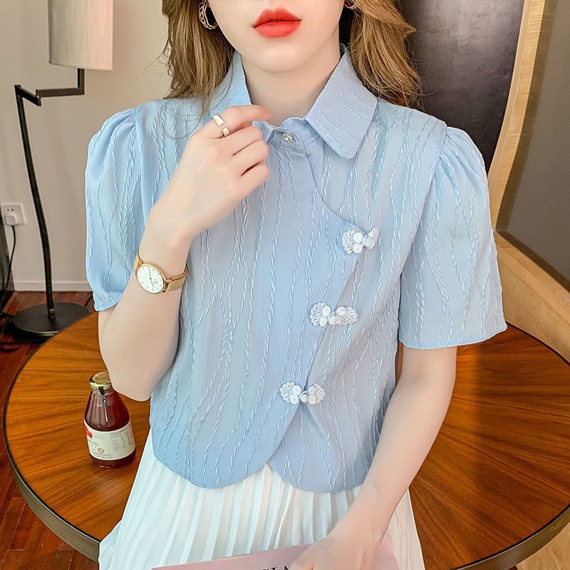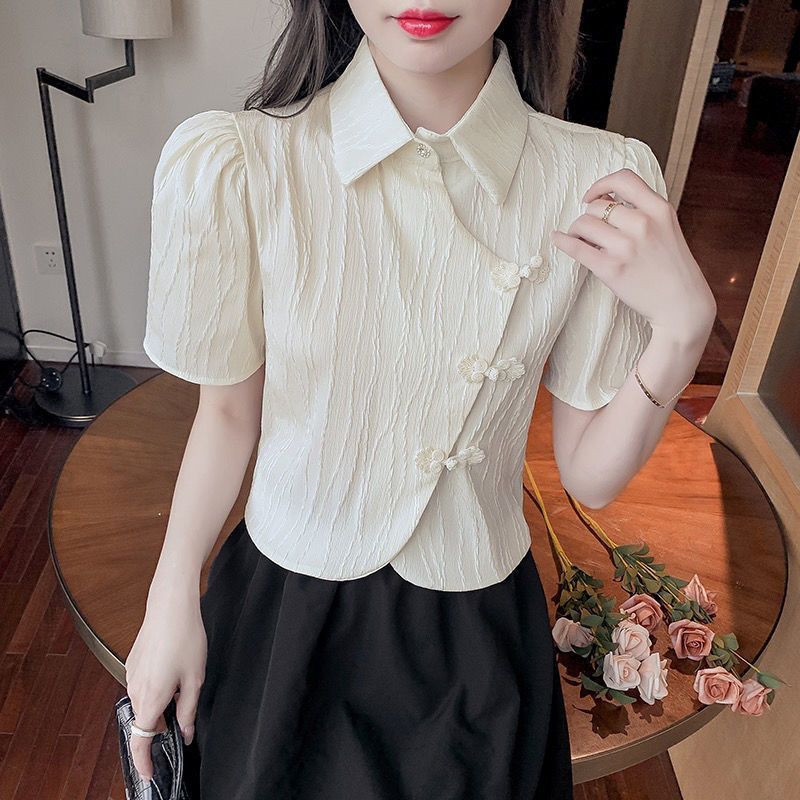 衬衣女 法式复古短款领衫开衫春夏季外设计感小众别致短袖上